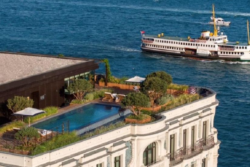 - 510 м2. Состоит из спальни с кроватью king-size и зоной отдыха, просторной гостиной с кабинетным роялем, столовой, тренажерного зала, хаммама, гардеробной, ванной комнаты, туалетной комнаты, огромной террасы с зонами отдыха, обеденной зоной, бассейном и панорамным видом на Босфор и Галатскую башню. Максимальное размещение – 3 человека.