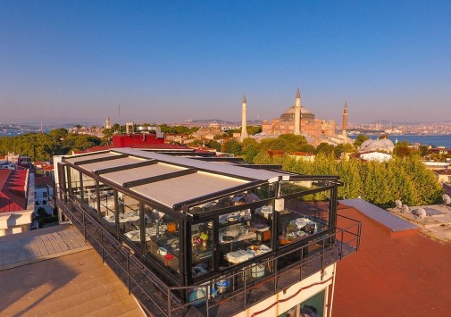 • Ресторан Deraliye с элегантным залом и террасой, с которой открывается потрясающий панорамный вид на Стамбул, предлагает аутентичную османскую кухню.