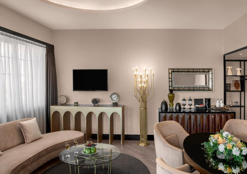 Для гостей – конференц-зал на 100 мест, зимний сад, вмещающий до 30 человек, бутики, парковка, услуги консьержа, услуги прачечной.
