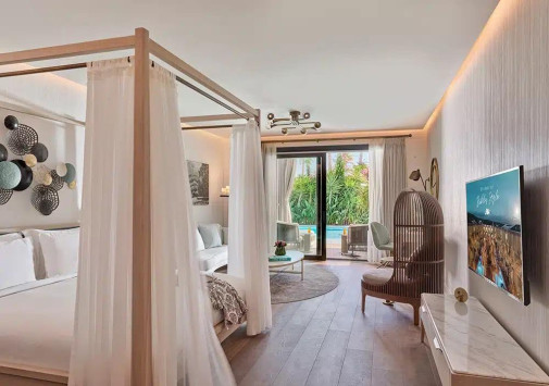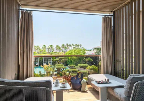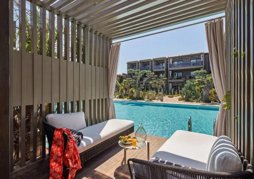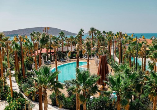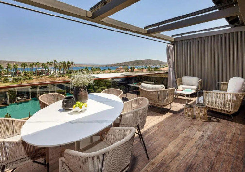 Biblos Beach Resort, Alacati расположен среди изумрудной зелени сада, у белоснежного частного пляжа в лазурной бухте. Очаровательный городок Алачаты, в котором находится отель, часто называют «турецким Сен-Тропе», а море в этих местах – настоящий рай для любителей серфинга. Фешенебельный отель предлагает гостям огромное разнообразие услуг: просторные элегантные номера с балконами и видом на сады и море, некоторые – со спуском в бассейн, изысканные рестораны и бары, великолепный спа-центр с эксклюзивными услугами, большой живописный бассейн, вместительные залы для мероприятий любого уровня и другой первоклассный сервис. Biblos Beach Resort, Alacati – оазис роскоши в чудесном уголке Эгейского побережья.
