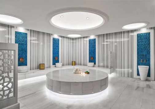 Отель располагает великолепным спа-центром, где гостям предлагаются массажные процедуры, гидротерапевтический бассейн с целебным воздействием, соляная и ароматическая сауны, хаммам, соляная комната для ингаляций, ледяная комната, гидромассажные души, зона отдыха с витаминным баром, а также процедурные кабинеты, где предлагается широкий спектр процедур, включая гидротерапию, ароматерапию и хромотерапию.