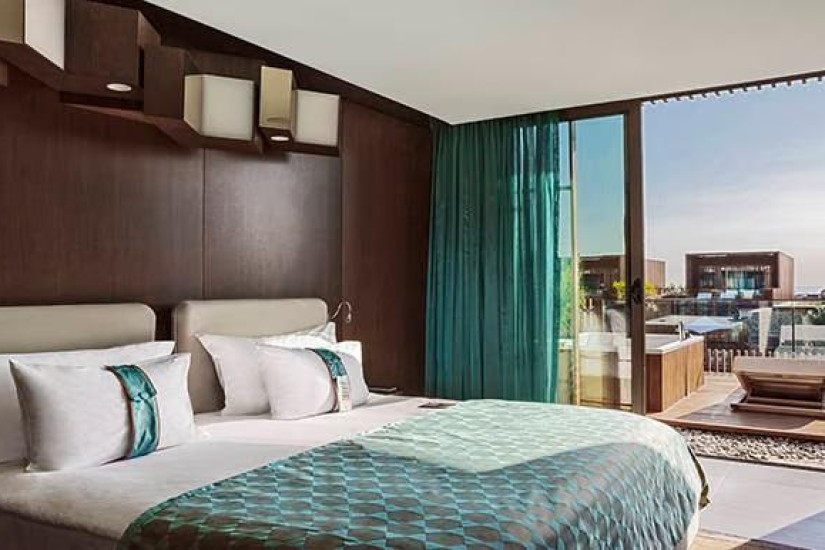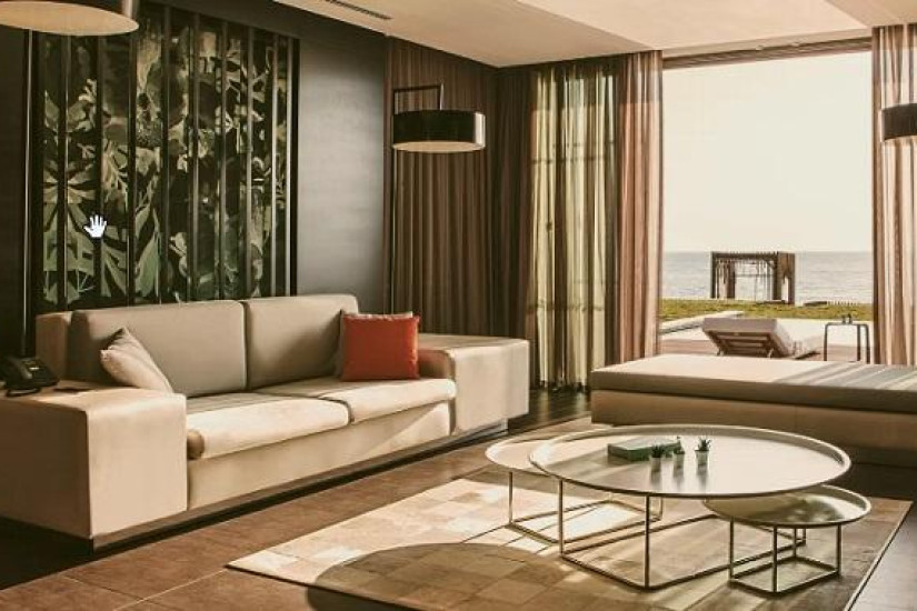 - 100 м2. Состоит из спальни с двуспальной кроватью, гостиной зоны, ванной комнаты с джакузи и душем, гардеробной, туалетной комнаты, балкона с видом на территорию отеля, сад или море. Максимальное размещение — 3 взрослых.
