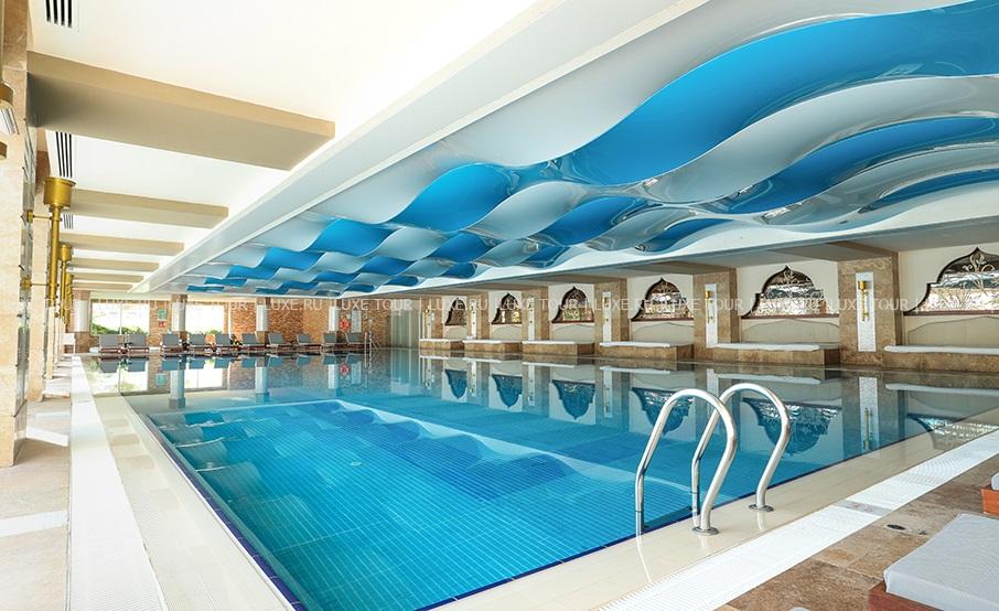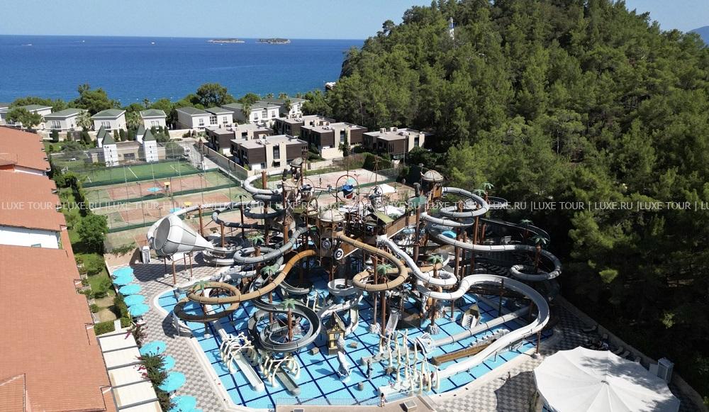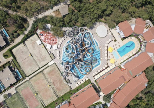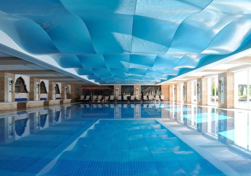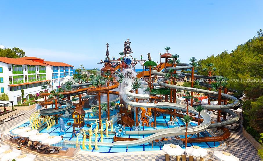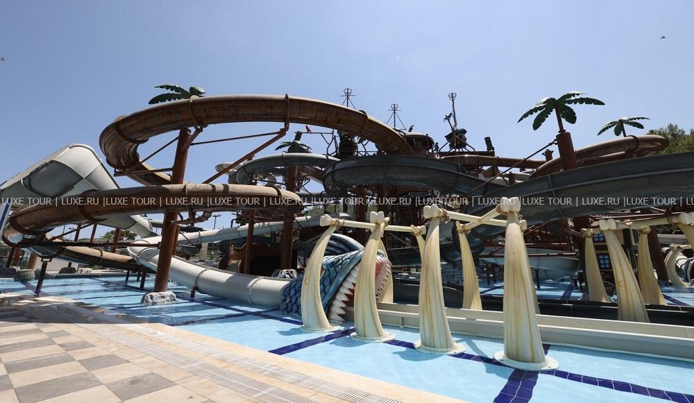 На территории отеля находится: мега-аквапарк с разнообразными горками и несколькими бассейнами, мини-бассейн для отдыха с младенцами (детям вход от 10 лет). Так же есть основной бассейн, детский бассейн, крытый бассейн и бассейн с морской водой.