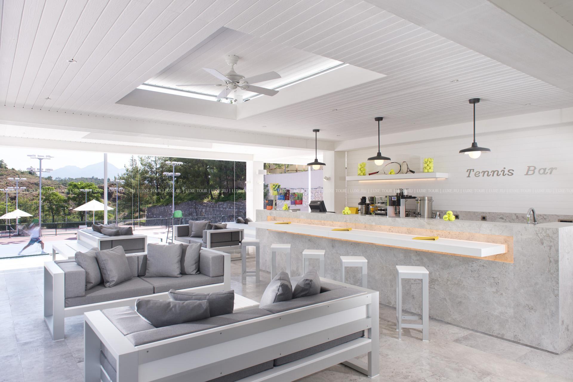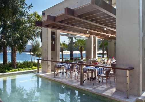 - На территории отеля есть несколько баров: Lobby Terrace Bar, Pool Terrace, Aqua Bar, Green Hill Bar, The Bay Beach Bar, Silence Beach Bar, Maris Beach Bar, La Guérite Beach Bar, Manos Bar, Zuma Bar, Nusr-Et Bar.