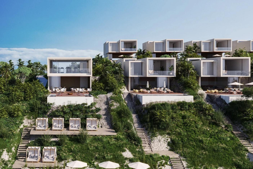 - 402 м2. Двухуровневая включает четыре спальни, гостиную, обеденную зону, полностью оборудованную кухню, четыре ванные комнаты, гостевую туалетную комнату, души на открытом воздухе, просторную террасу с бассейном, зоной отдыха, обеденной зоной, зоной для барбекю и видом на океан. Виллы расположены ближе к пляжу. Максимальное размещение – 8 человек.