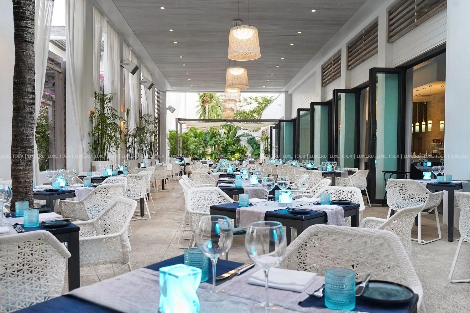• Пляжный ресторан Blue Water Bistro предлагает легкие блюда, тапасы и морепродукты на гриле.