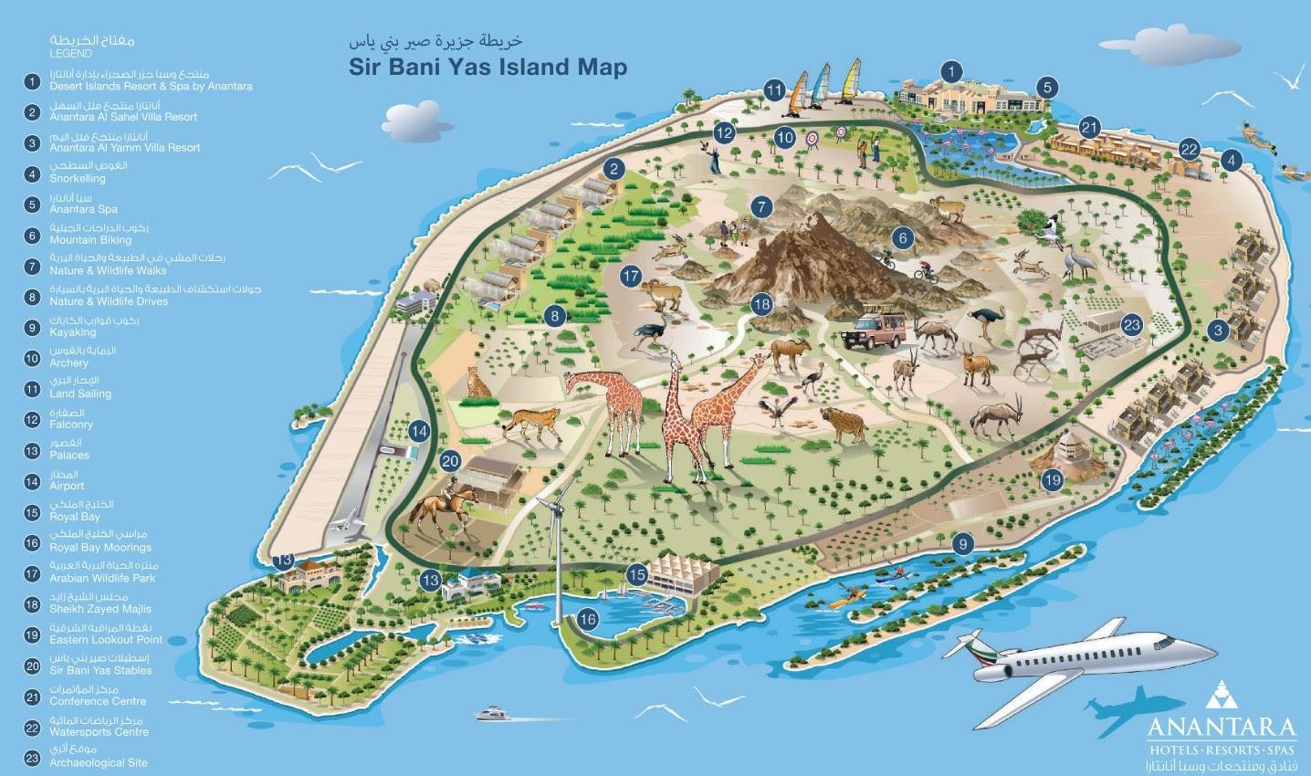 Отель расположен на восточном побережье острова Сир Бани-Яс, в 250 км к юго-западу от Абу-Даби и примерно в 25 минутах езды на водном трансфере от пристани на материковой части эмирата.
