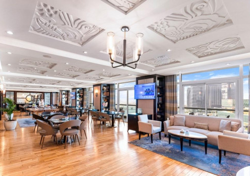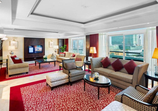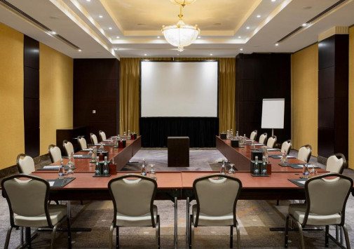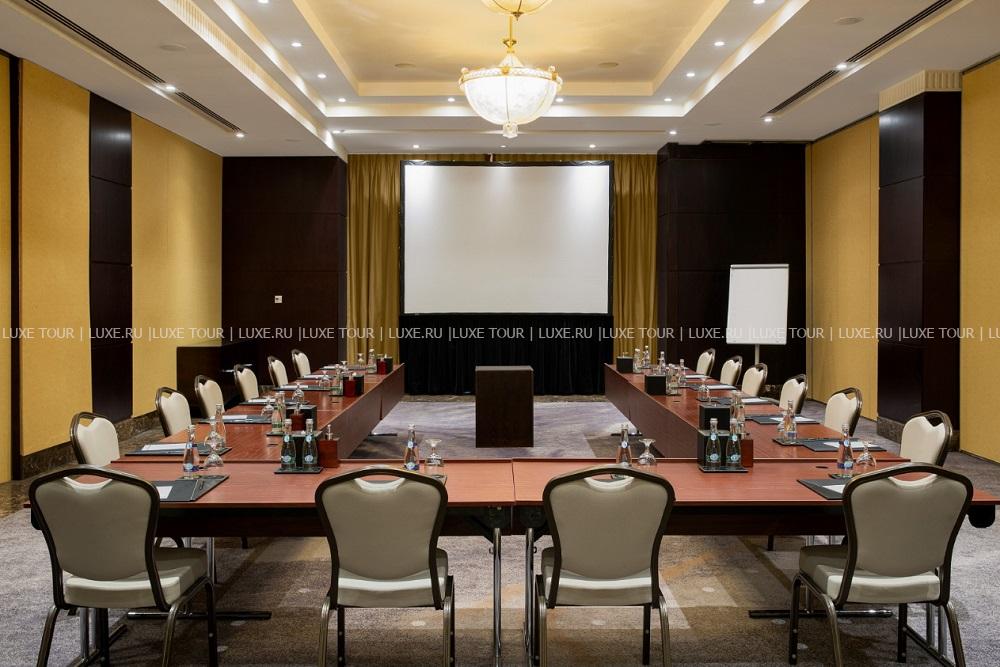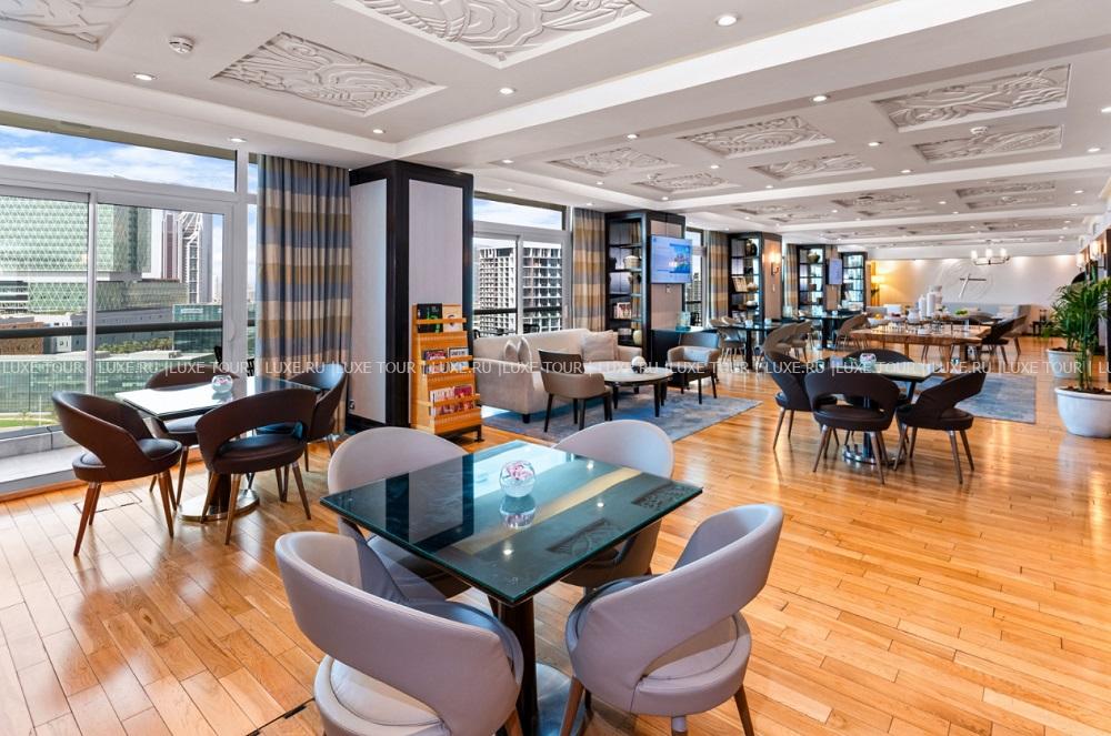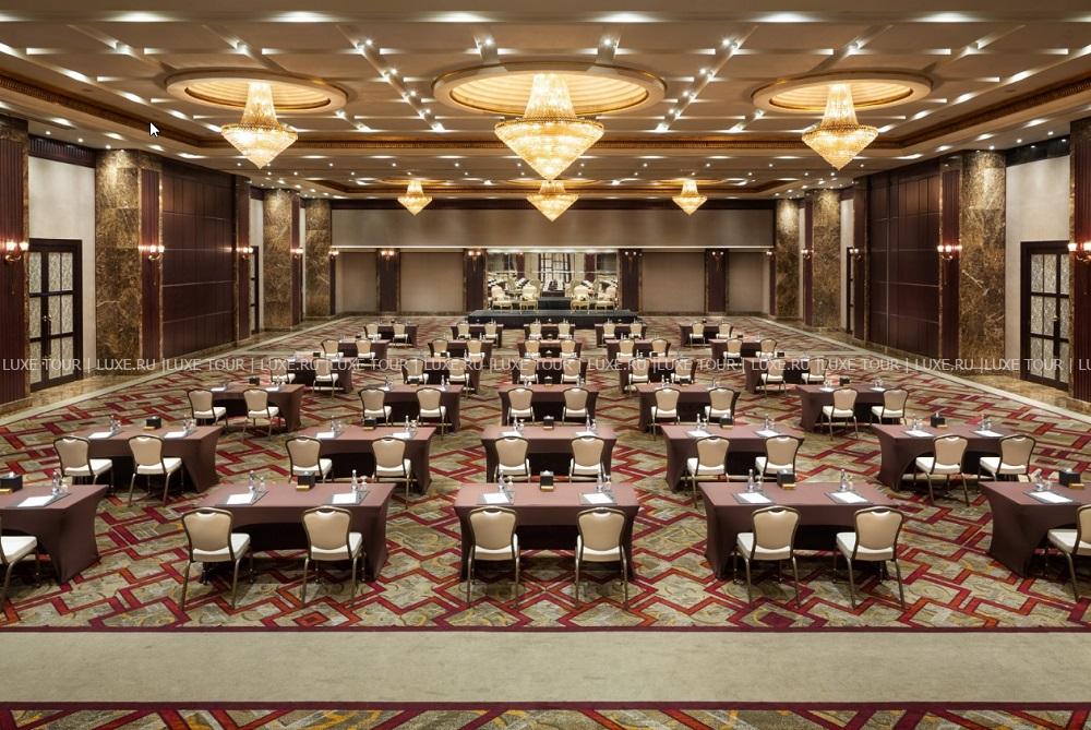Для гостей – несколько залов для деловых и торжественных мероприятий, бизнес-центр, магазины, автомобильная парковка, аренда автомобилей, лимузин-сервис, услуги консьержа, услуги прачечной и химчистки.