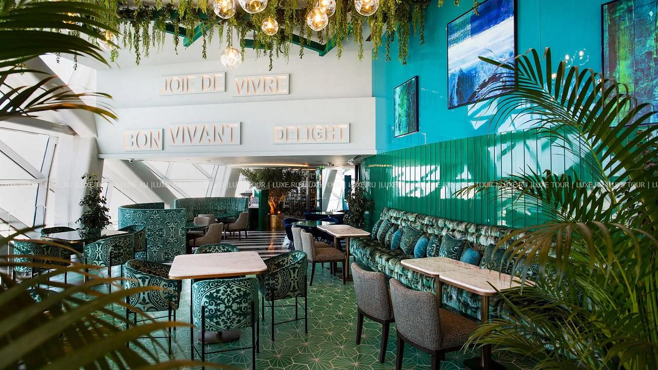 • Ресторан Cyan Brasserie – предлагает блюда французской и арабской кухонь, легкие закуски и пивные напитки.