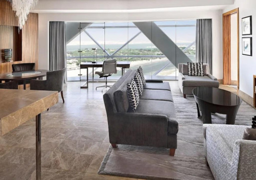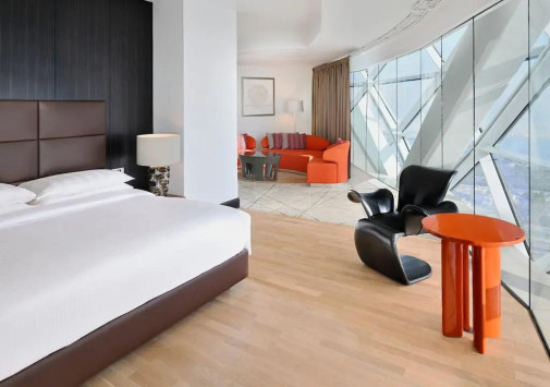 Andaz Capital Gate Abu Dhabi расположен в уникальном здании – знаменитой «падающей башне» Абу-Даби. Сверкающая башня высотой 160 м внесена в книгу рекордов Гиннеса: она отклоняется от вертикальной оси на 18 градусов, в то время, как легендарная Пизанская башня – всего на 4 градуса. Необычная архитектура здания повлияла и на интерьеры отеля, придав многим помещениям оригинальную форму - включая элегантные комфортабельные номера. Помимо эксклюзивного размещения гостей отеля ждут и другие услуги высочайшего уровня: шикарные рестораны и бары, великолепный спа-центр, открытый панорамный бассейн, конференц-залы и многое другое.