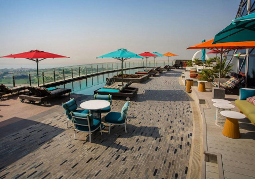 На территории отеля есть открытый бассейн с панорамным видом на город.
