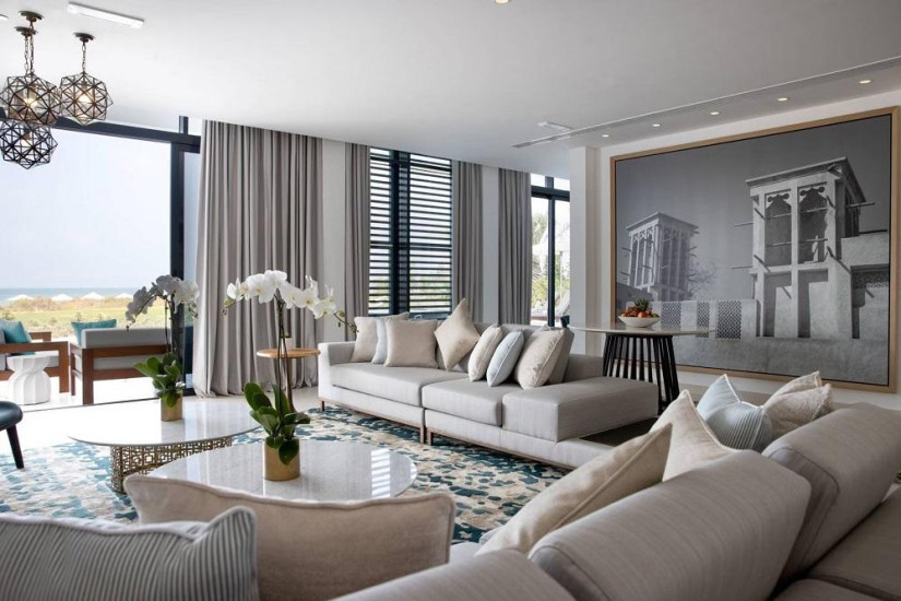 - В отеле номера различных категорий и виллы с собственными бассейнами. Просторные номера сочетают шикарный декор в современном арабском стиле и первоклассный комфорт, а с балконов и террас открывается прекрасный вид на Персидский залив и живописную территорию курорта.