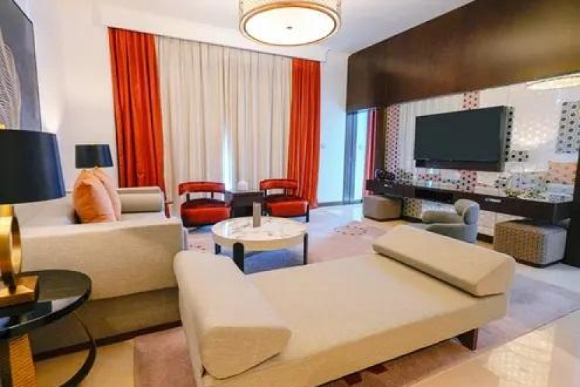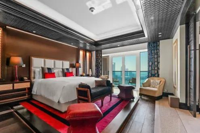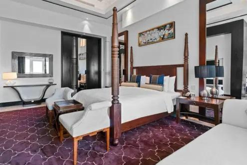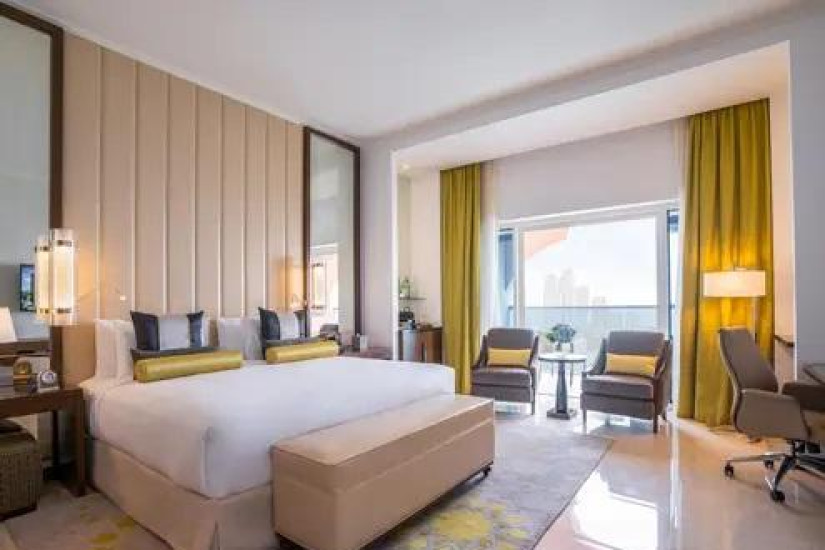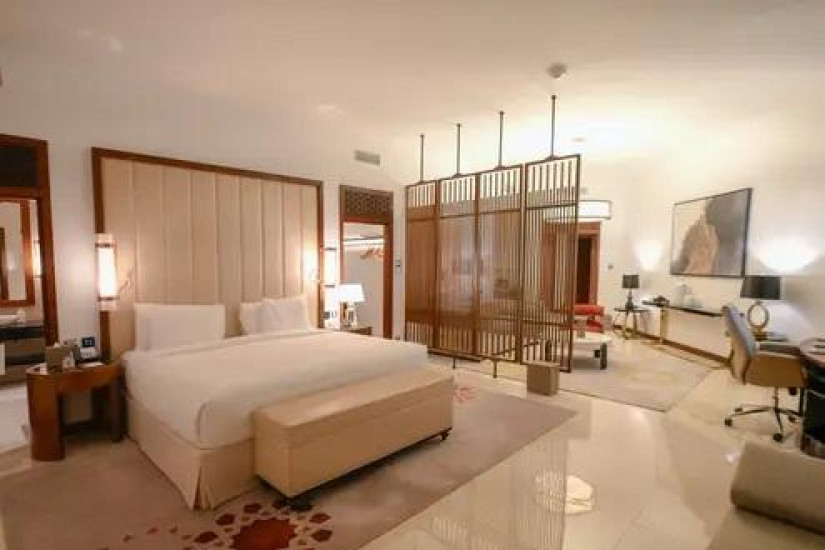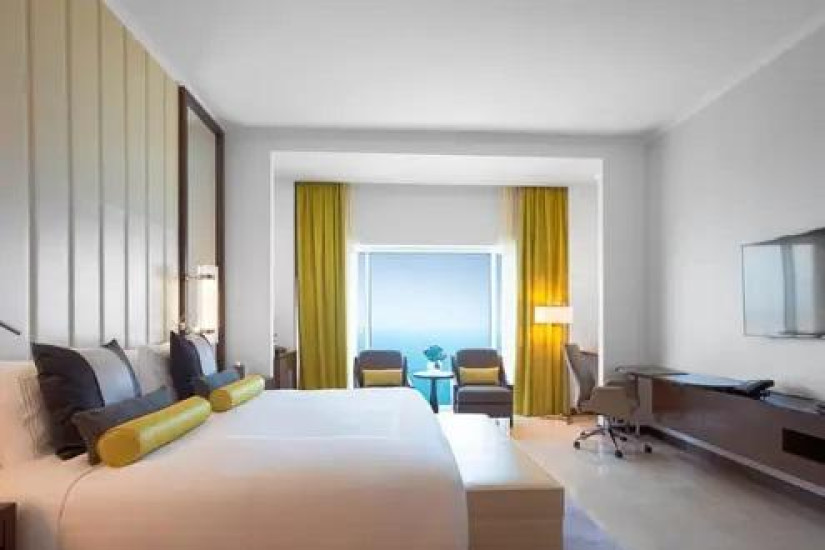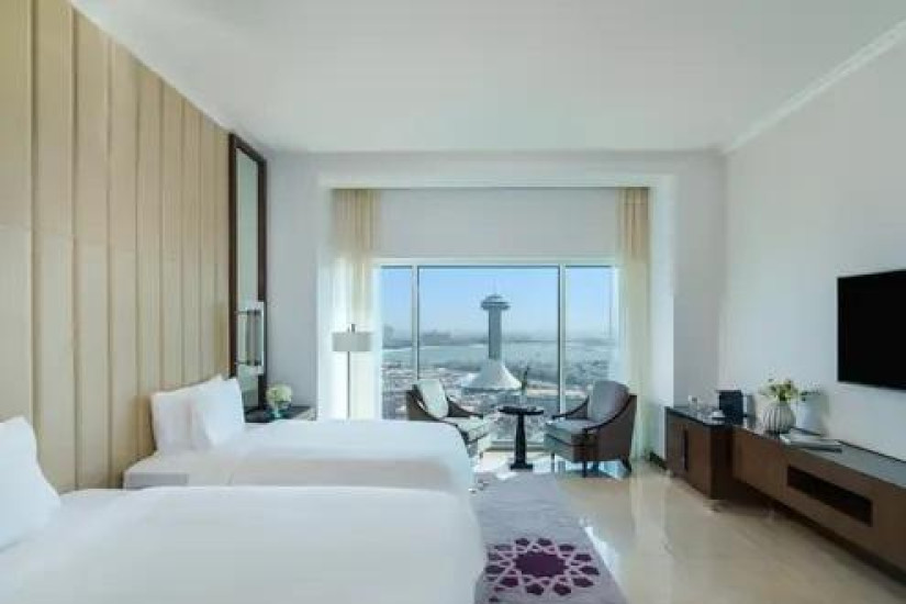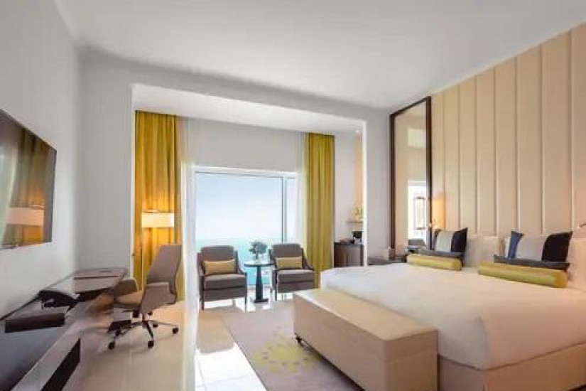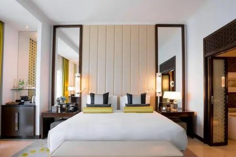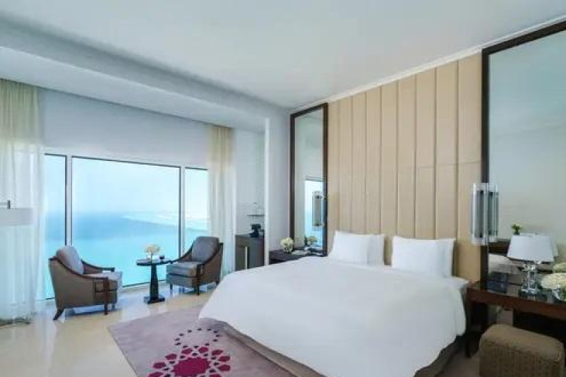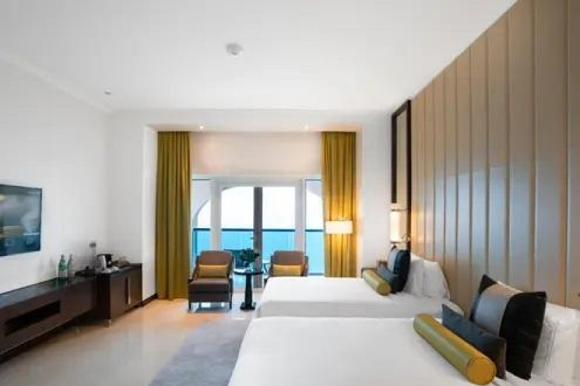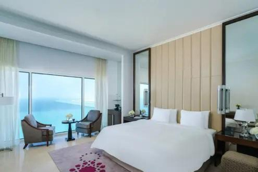 - В отеле номера различных категорий. Номера декорированы в элегантном стиле с арабскими мотивами и оснащены всеми современными удобствами, а из панорамных окон открывается великолепный вид на лазурный Персидский залив, живописные сады и город.