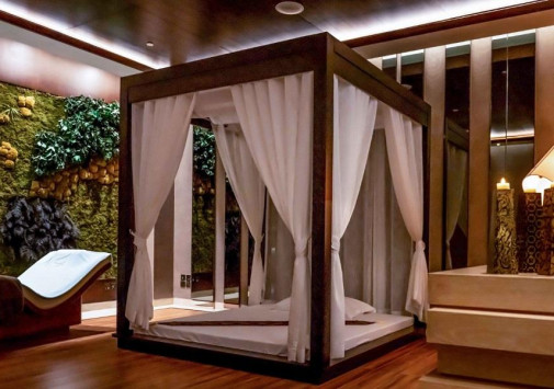 Отель располагает первоклассным спа-центром с турецким и марокканским хаммамами, зоной релаксации и процедурными кабинетами, в которых предложены оздоровительные процедуры, массаж и широкий спектр услуг по уходу за телом и лицом, включая эксклюзивные процедуры, основанные на гималайских традициях.