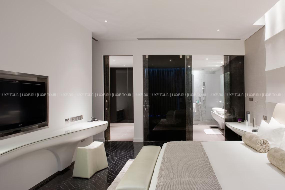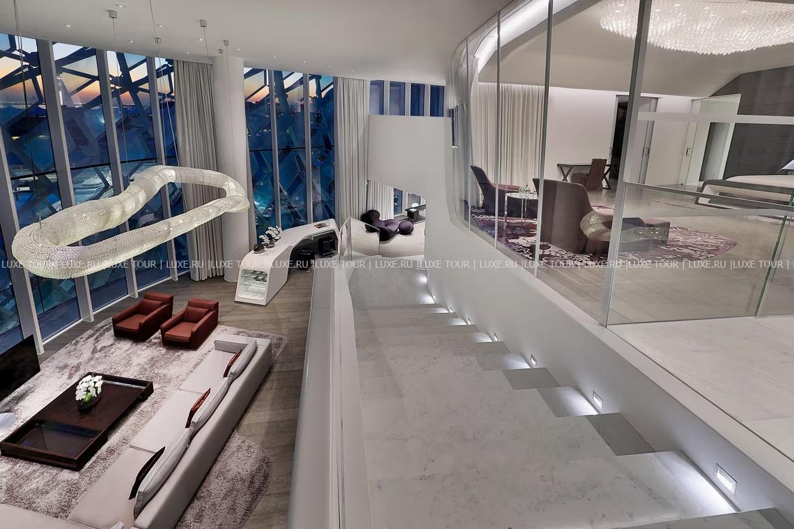 409 м2. Состоит из спальни с кроватью king-size, гостиной, обеденной зоны, кухни, столовой, джакузи, гардеробной, ванной комнаты, балкона с видом на воду, бассейна. Максимальное размещение — 3 человека.
