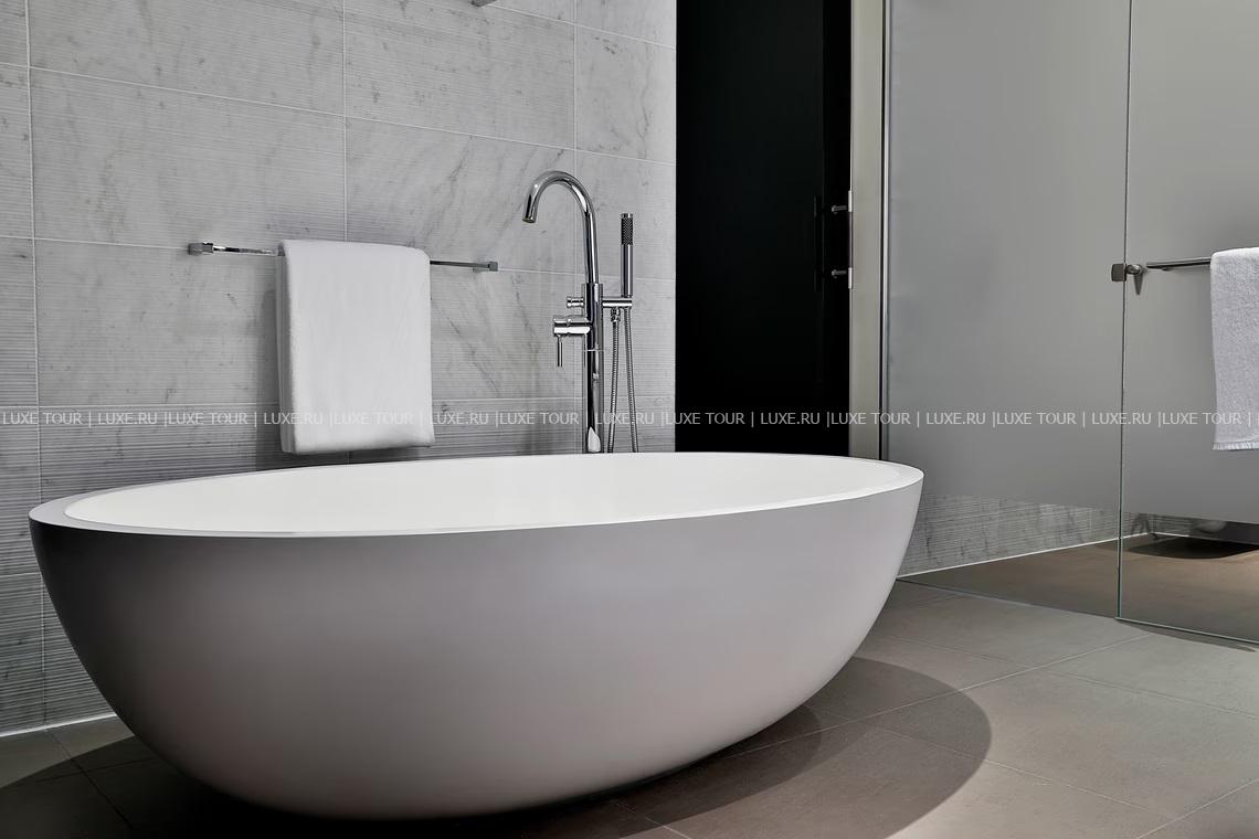 54 м2. Состоит из спальни с кроватью king-size или двумя кроватями twin, зоны отдыха, ванной комнаты, балкона. Максимальное размещение — 3 человека.