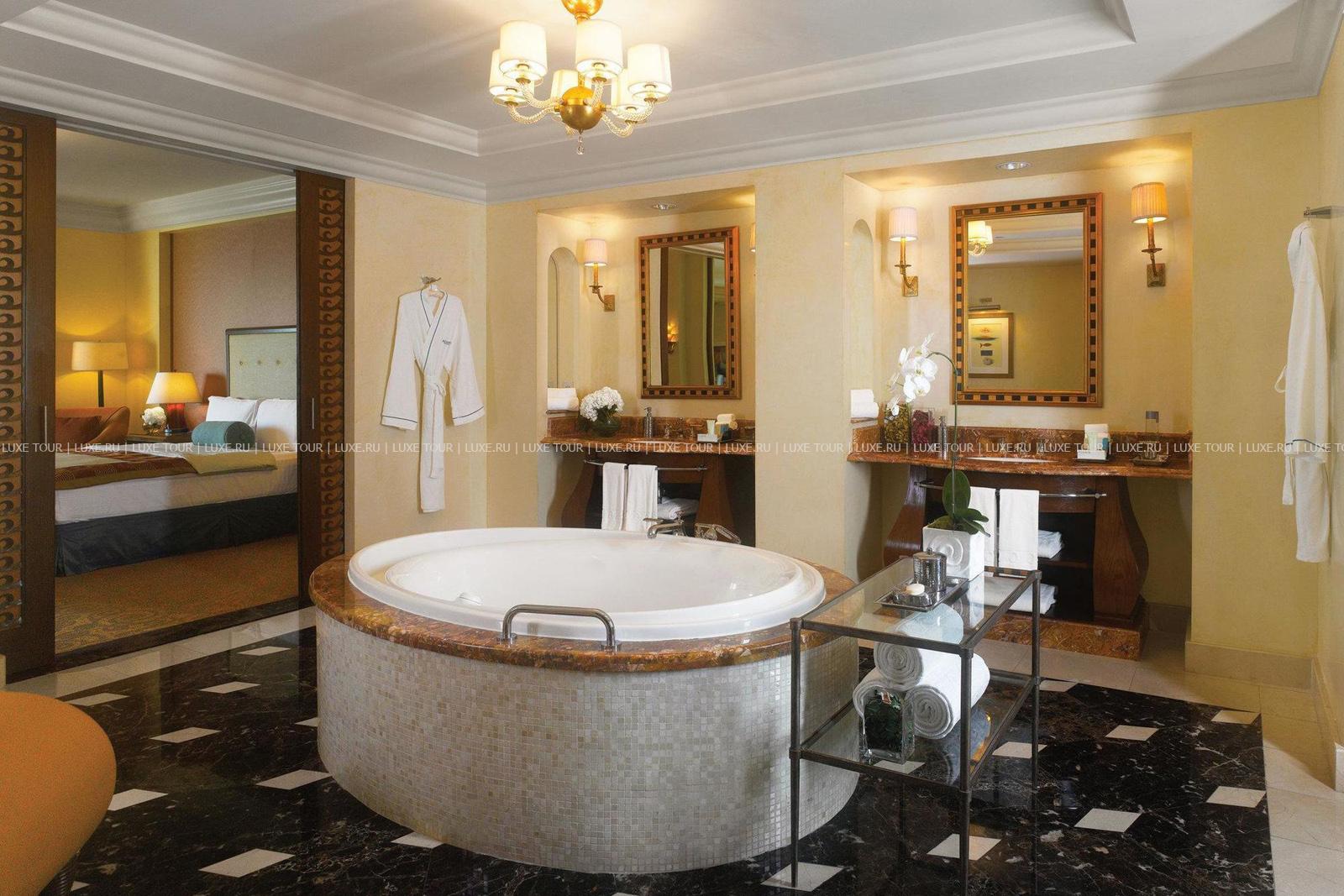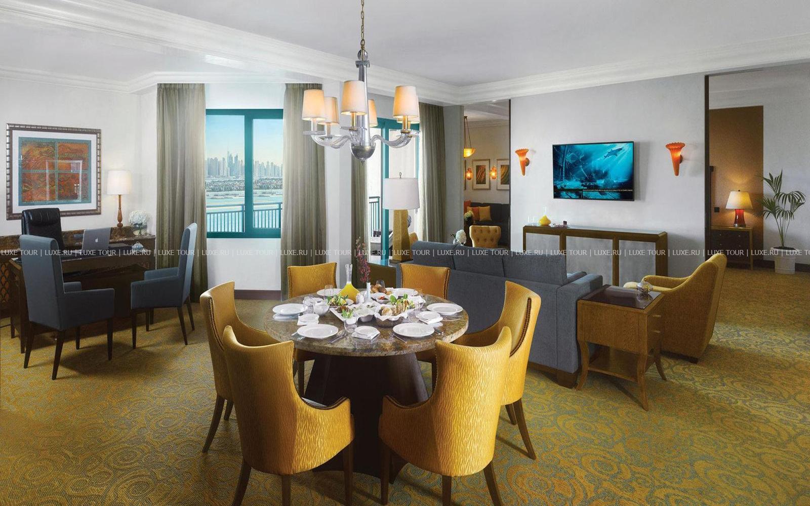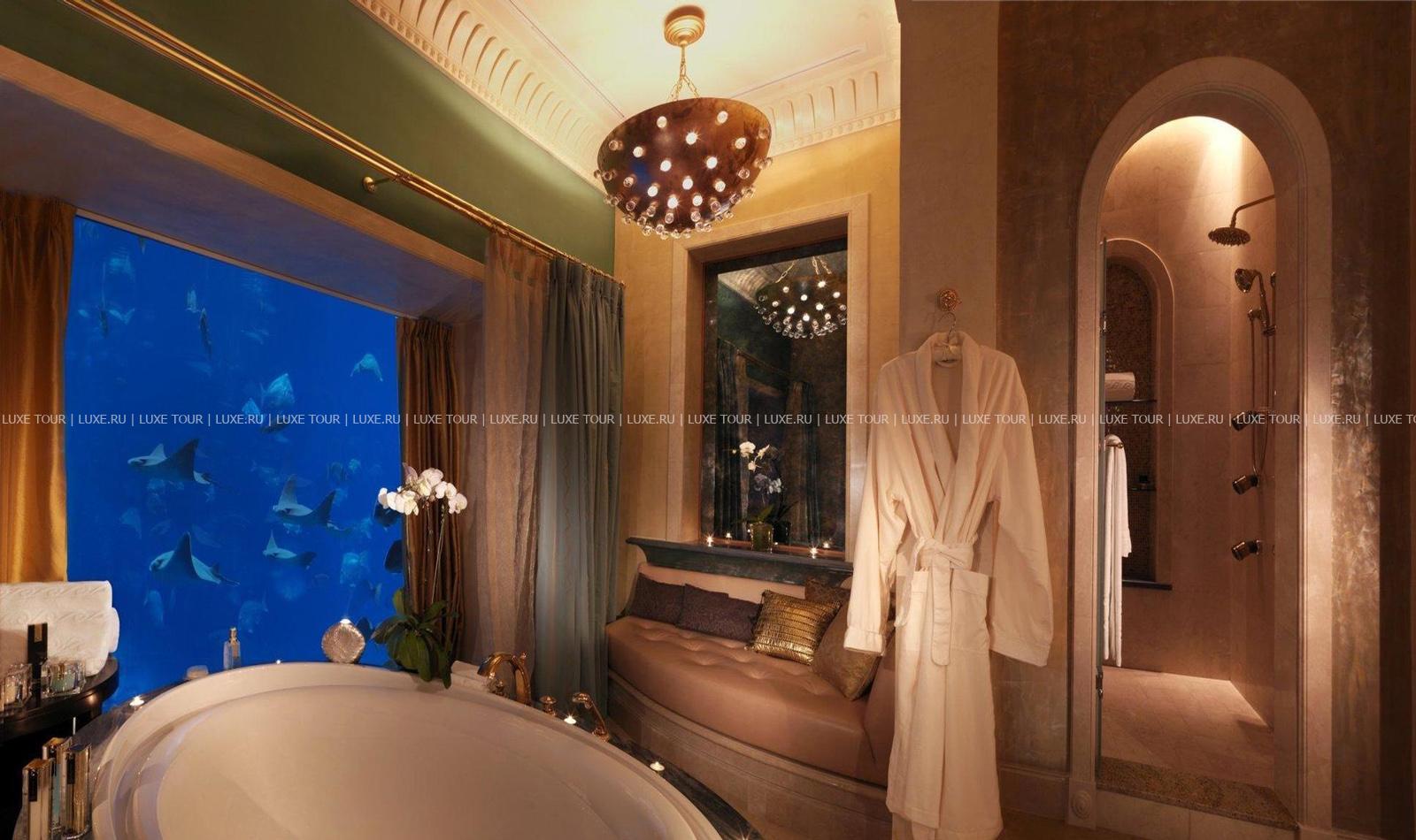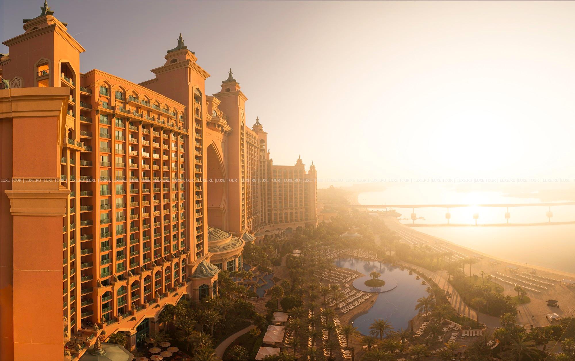 На знаменитом острове Пальма Джумейра, над бирюзовыми водами Персидского залива и белоснежной полосой пляжа возвышается величественный дворец Atlantis, The Palm. Концепция грандиозного курорта навеяна легендами о древней Атлантиде, исчезнувшей в морских глубинах, а разнообразие возможностей для незабываемого отдыха впечатляет своим диапазоном. Просторные элегантные номера и шикарные сьюты с потрясающим видом на остров, море и даже на подводный мир огромного океанариума, в котором живут 65 000 морских обитателей. А также многочисленные рестораны, в том числе, мирового уровня, и уютные бары, лазурные бассейны и роскошный Spa-центр, спорт, дайвинг и масса развлечений для всей семьи – от клубов для детей и подростков, дискотек и феерических шоу до захватывающих аттракционов в крупнейшем в ОАЭ аквапарке Aquaventure, раскинувшемся на 17 га. Atlantis, The Palm – не только уникальный отель, но и одна из «визитных карточек» Дубая.