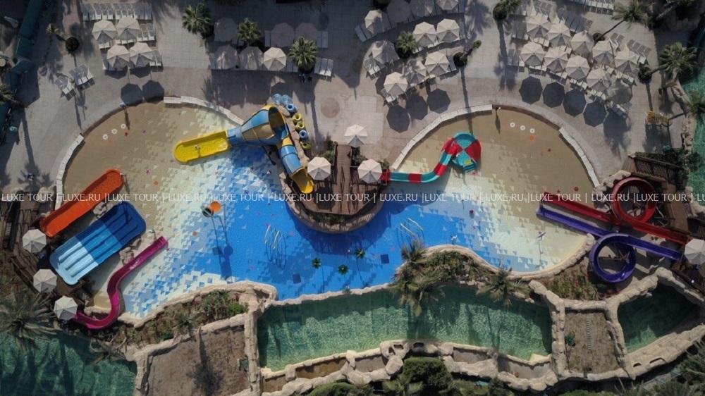 В отеле имеется семейный бассейн, в аквапарке – детские аттракционы, работают клуб для детей 4-12 лет и клуб The Zone для подростков 13-17 лет, в которых предлагается разнообразие игр, развлекательных, творческих и познавательных программ. Также в отеле предусмотрены условия размещения для гостей с детьми, в ресторанах есть детское меню, возможны услуги няни (по запросу).