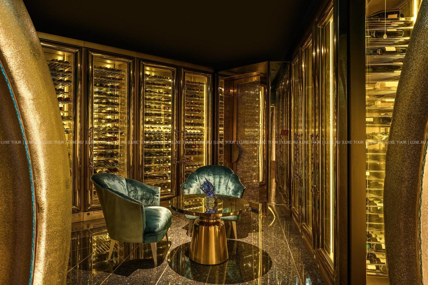 • В уникальном ресторане-аквариуме Ristorante L' Olivo at Al Mahara, куда можно добраться, совершив трехминутное виртуальное путешествие на подводной лодке, предлагаются изысканные блюда из морепродуктов. Вечерами в ресторане играет арфа.
