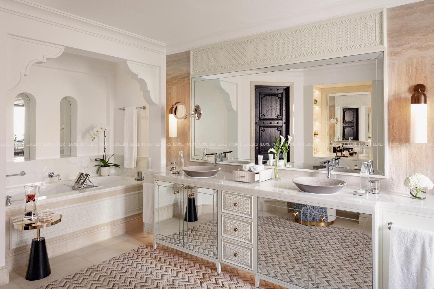 Элегантные охровые двухэтажные коттеджи Dar Al Masyaf, выполненные в арабском стиле, расположены среди ухоженного сада и извилистых водных каналов, на берегу просторного пляжа, омываемого прозрачными водами Персидского залива, и входят в курортный комплекс Madinat Jumeirah — настоящую восточную цитадель, где утонченная роскошь соединяется с вековыми историческими и культурными традициями. В комфортабельных номерах — изысканные интерьеры в восточном стиле, выдержанные в теплых тонах, с полами, выложенными плиткой, ажурными окнами, изящной антикварной мебелью и оригинальными украшениями в арабских традициях, с уютных террас и балконов открывается прекрасный вид на окружающие сады и море.