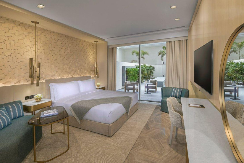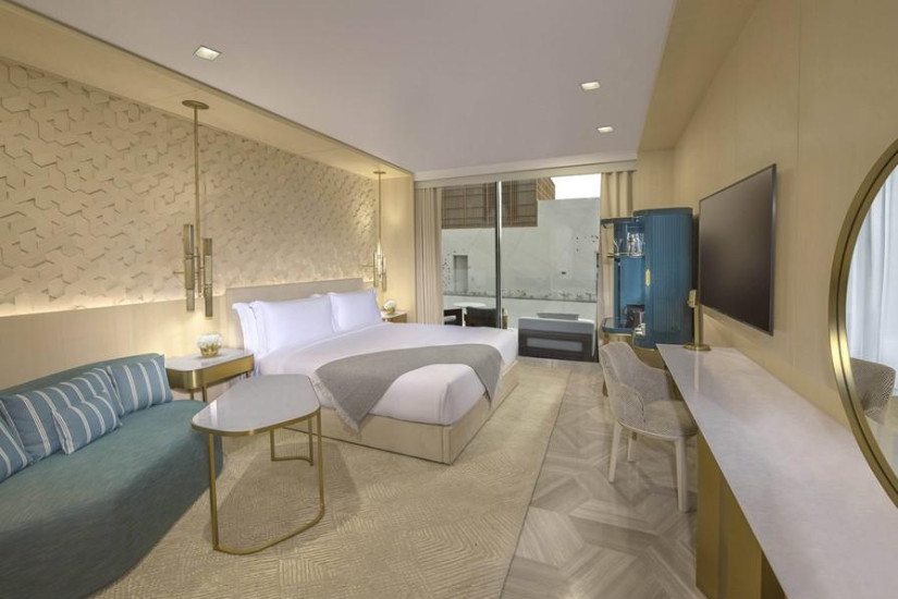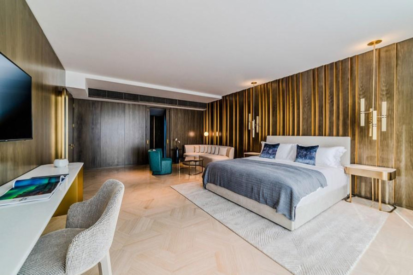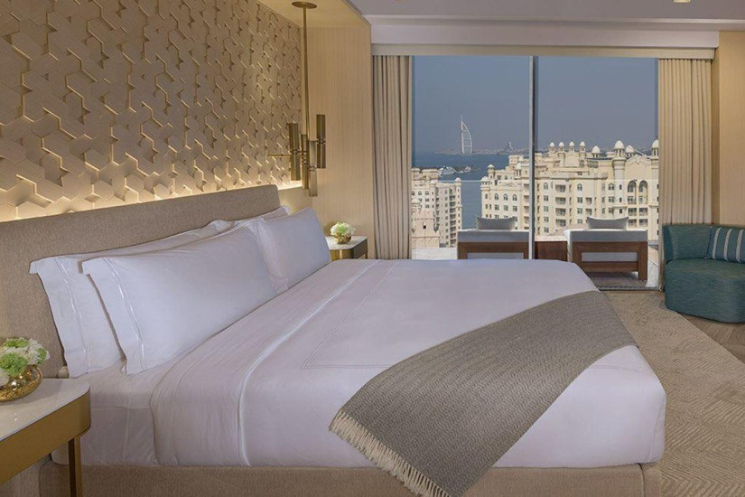 - 163 м2. Состоит из двух спален с кроватью king-size, гостиной с обеденной зоной, кухни, двух ванных комнат с ванной и душем, гардеробной, гостевой туалетной комнаты, двух балконов с великолепным панорамным видом на Персидский залив и пристань для яхт. Номера расположены на верхних этажах отеля.