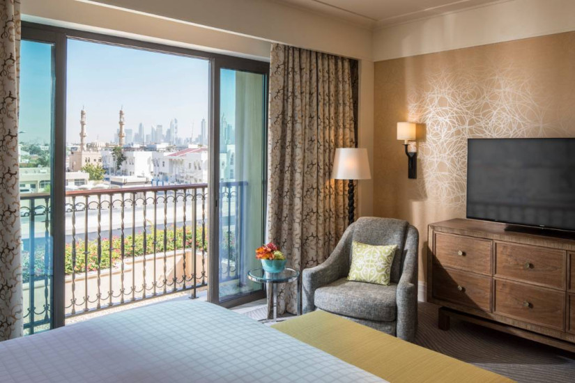 - 70 м2. Расположен с 1 по 3 этаж, состоит из спальни с кроватью king-size или двумя кроватями twin и зоной отдыха, ванной комнаты с ванной и отдельным душем, гардеробной, балкон.В некоторых номерах открывается вид на город и на малоэтажный жилой район Jumeirah. Максимальное размещение - 3 взрослых или 2 взрослых +1 ребенок.