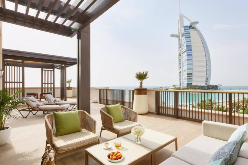 - 135 м2. Состоит из спальни с кроватью king-size и гостинной зоны, ванной комнаты открытого плана, меблированной террасы с зоной отдыха и видом на море или Burj. Максимальное размещение - 2 взрослых +2 ребенка или 3 взрослых + 1 ребенок.
