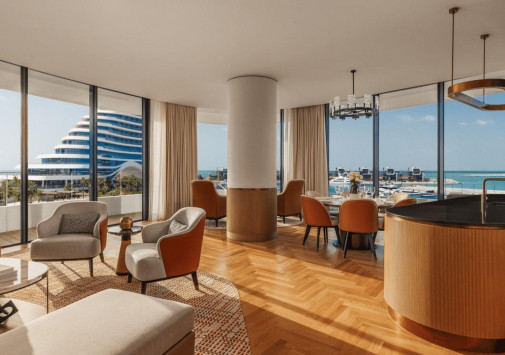 Над бирюзовой гладью Персидского залива сверкает роскошная белоснежная яхта, пришвартованная у ультрасовременной марины – это Jumeirah Residence Marsa Al Arab, шедевр знаменитого архитектора Шона Киллы. Грандиозный проект продолжил тематику расположенных рядом легендарных дубайских отелей – «Паруса» Jumeirah Burj Al Arab и «Волны» Jumeirah Beach Hotel. Не меньше впечатляет и спектр эксклюзивных услуг курортного комплекса – от шикарных номеров с фантастическим видом на море и яхтенную гавань до изысканных гастрономических заведений, великолепного Spa-комплекса, лазурных бассейнов и самого протяженного частного пляжа Дубая. Jumeirah Residence Marsa Al Arab – еще одна жемчужина в драгоценном ожерелье Джумейры.