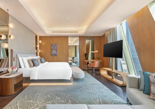 • На 36 этаже, откуда открывается фантастический вид на город, находится Yù & Mì, вдохновленный золотой эрой Шанхая и включающий две зоны: стильный бар Yù, что означает «нефрит», предлагает коктейли в азиатском стиле, и ресторан Mì, название которого переводится как «тайна», открывает секреты кантонской и сычуаньской кухни, переосмысленные для современных гурманов.