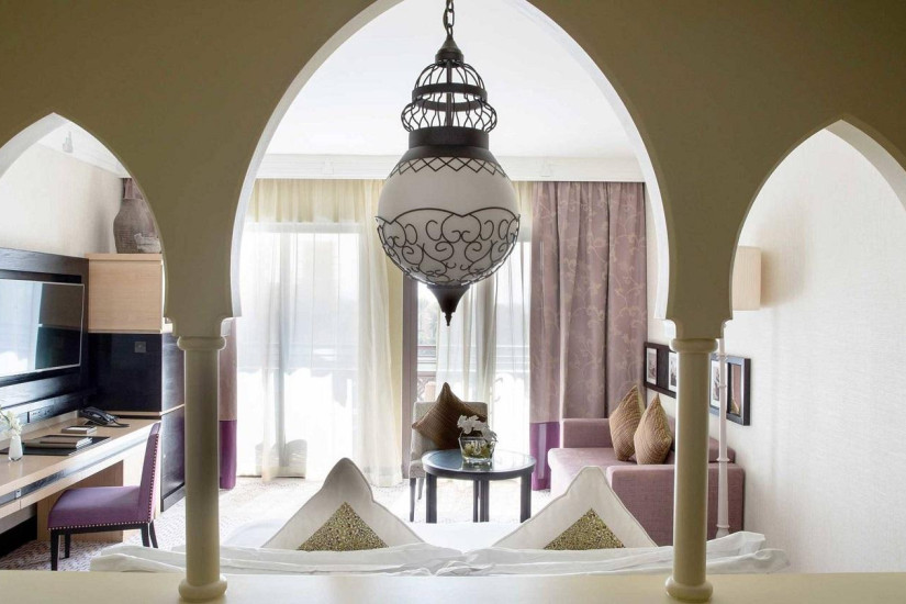 - 50 м2. Состоит из спальни с кроватью king-size или двумя кроватями twin, с гостиной зоной, ванной комнаты с ванной и тропическим душем, гардеробной. Роскошно оформленный номер в современном ближневосточном стиле имеет собственный балкон с видом на Jumeirah Al Naseem. Гостям предоставляется расширенный набор туалетных принадлежностей, доступ в Amal Lounge, а так же доступ в Wald Wadi Waterpark. Максимальное размещение – 3 взрослых или 2 взрослых + 2 ребенка.