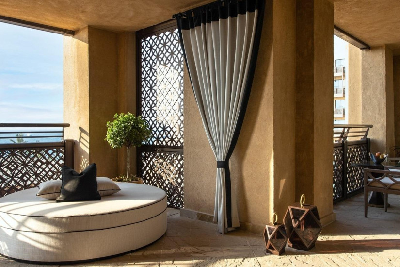 - 50 м2. Состоит из спальни с кроватью king-size или двумя кроватями twin, с гостиной зоной, ванной комнаты с ванной и тропическим душем, гардеробной, из панорамных окон гостиной или с собственного балкона открываются потрясающие виды на Персидский залив. Гостям номера предоставляется доступ в Wald Wadi Waterpark. Максимальное размещение – 3 взрослых или 2 взрослых + 2 ребенка.