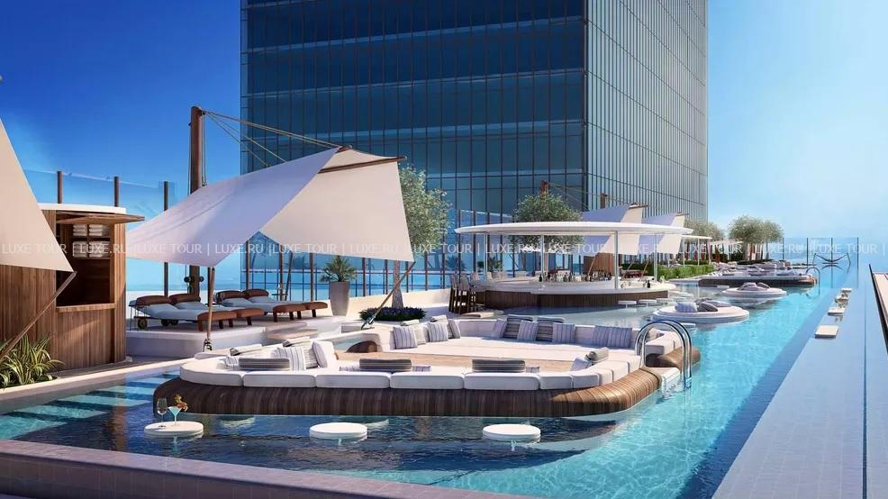 В отеле имеются два открытых бассейна: семейный бассейн-лагуна на террасе с тропическим садом и самый длинный в ОАЭ панорамный бассейн-инфинити, расположенный в пляжном клубе на крыше павильона The Link на высоте 100 м над землей.