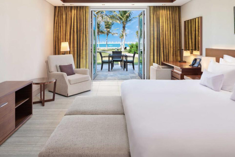 - В отеле 208 номеров категории Suite. Просторные номера декорированы в элегантном современном стиле и оснащены с первоклассным комфортом, а с балконов и террас открывается прекрасный вид на лазурный Персидский залив, белоснежный пляж и живописный сад.