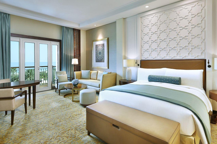 В отеле 294 номера различной категорий, включая 193 Deluxe Rooms, 60 Club Level Rooms , и 42 Suites. Элегантные интерьеры номеров навеяны средиземноморским и арабским стилями, а с балконов и террас открывается прекрасный вид на лазурный бассейн, живописный сад и Персидский залив. Также отель располагает клубными номерами, гостям которых предоставляются дополнительные услуги Club Lounge на 3 этаже с видом на залив: отдельная стойка регистрации, бесплатный Wi-Fi и пользование ноутбуками, услуги бизнес-центра, завтрак, вечерние коктейли, послеобеденный чай и легкие закуски в клубной гостиной.