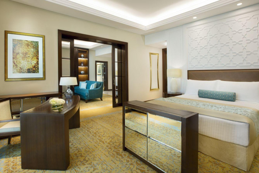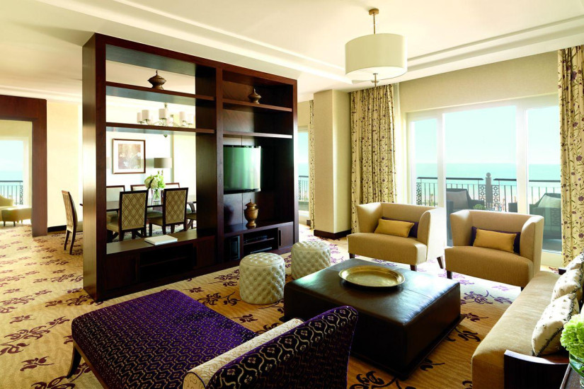 - 308 м2. Состоит из двух спален (с кроватью king-size и двумя кроватями twin), гостиной, столовой, кухни, ванной комнаты с джакузи, парной, гардеробной, меблированного балкона. Фешенебельный номер с панорамным видом на персидский залив, расположен на 6 этаже. Максимальное размещение — 4 взрослых + 2 ребенка. Гостям номера предоставляются клубные услуги.