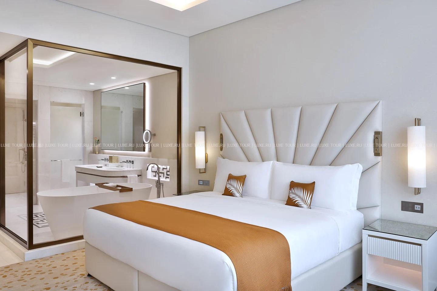 The St. Regis Dubai, The Palm занимает первые 18 этажей 240-метровой башни грандиозного торгово-развлекательного центра Nakheel Mall, в котором, кроме шикарного отеля, находятся более 300 магазинов ведущих мировых брендов, множество ресторанов, кафе и всевозможных развлечений, включая кинотеатр Vox Cinemas и смотровую площадку на 52 этаже, откуда открывается фантастический вид на Пальму-Джумейру. Сам отель предлагает сервис знаменитого гостиничного бренда – от изысканной кухни, элегантных номеров с панорамным видом на Персидский залив и услуг персонального дворецкого до лазурных бассейнов, Spa-центра и современно оснащенных конференц-залов. The St. Regis Dubai, The Palm – отличный отель для знакомства с достопримечательностями Дубая.