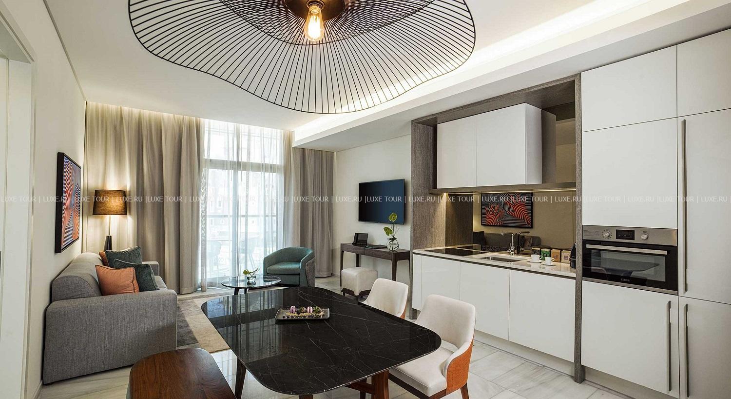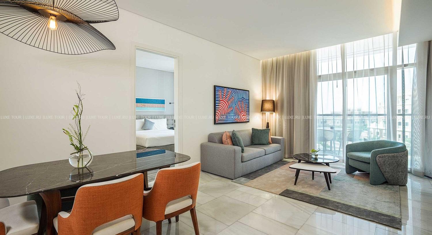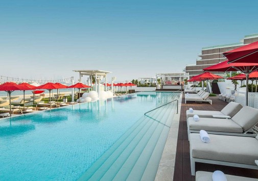 Современное здание Th8 Palm Hotel возвышается у широкой полосы полукилометрового пляжа и бирюзовых вод Персидского залива, недалеко от грандиозного торгово-развлекательного центра The Pointe и других достопримечательностей острова Пальм- Джумейра. Шикарный бутик-отель сочетает стильный функциональный дизайн и непринужденную космополитичную атмосферу, а потрясающий вид на сверкающий залив и пейзажи Дубая открывается здесь отовсюду – с балконов просторных элегантных номеров, с террасы ресторана и бара Envy, из панорамных бассейнов и из пляжного клуба Fluid, где проходят зажигательные вечеринки. Th8 Palm Hotel приглашает окунуться в атмосферу роскоши, модных тенденций и неограниченных возможностей для отдыха.