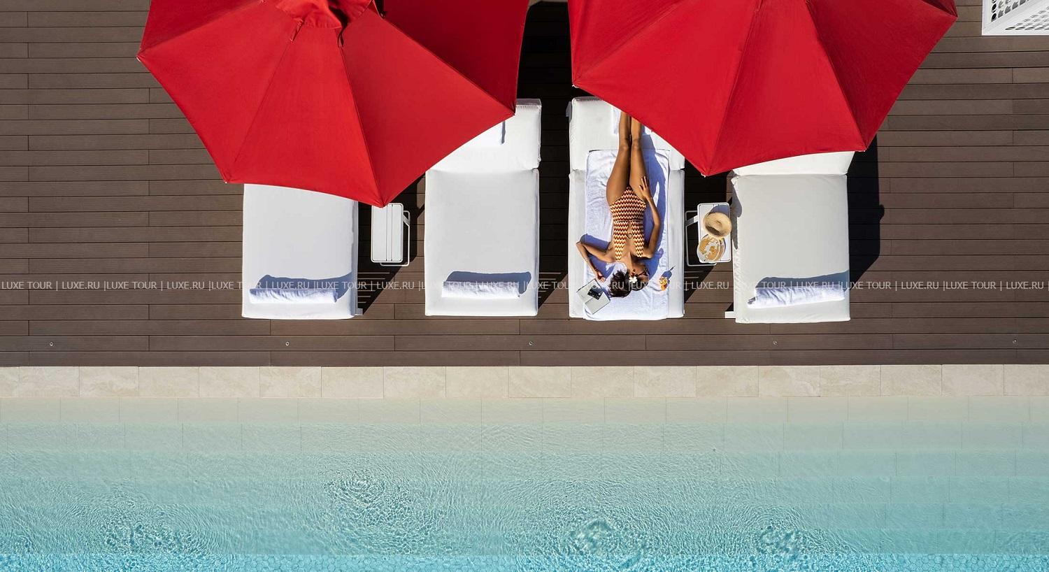 В отеле имеются: два открытых бассейна с подогревом и видом на море: бассейн для взрослых и семейный бассейн, также у бассейнов находятся шатры для отдыха.