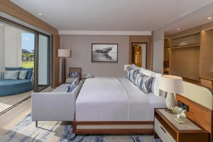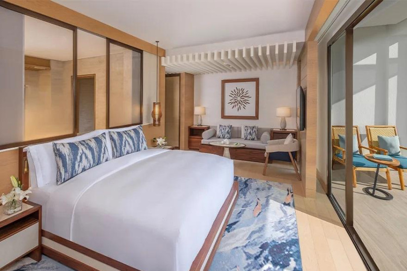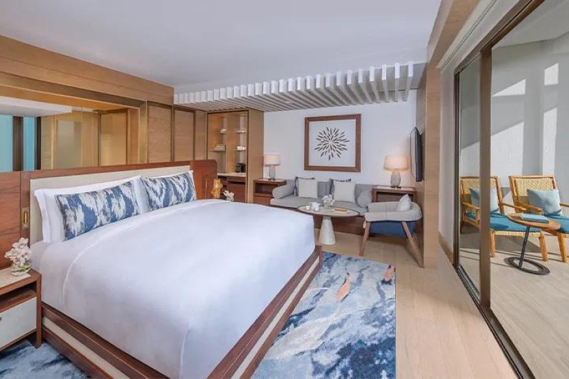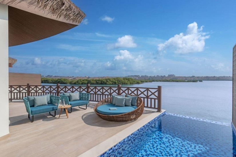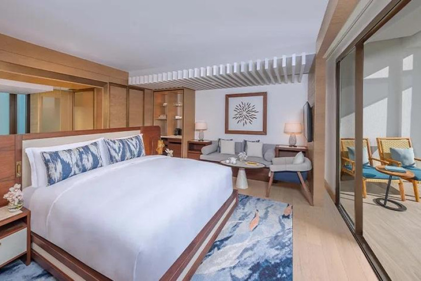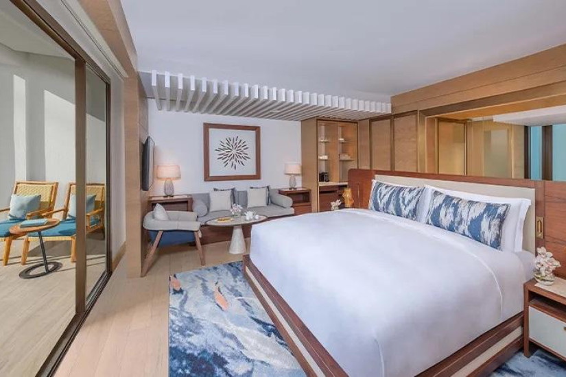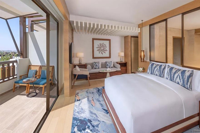 - В отеле номера различных категорий. Элегантные комфортабельные номера выполнены в современном арабском стиле и оснащены первоклассными удобствами, дизайн шикарных вилл, расположенных над водами лагуны, навеян мальдивскими мотивами, а с балконов и террас номеров и вилл открывается великолепный вид на Персидский залив и живописные пейзажи курорта.