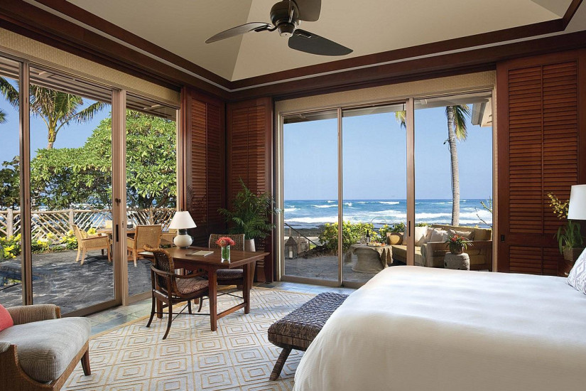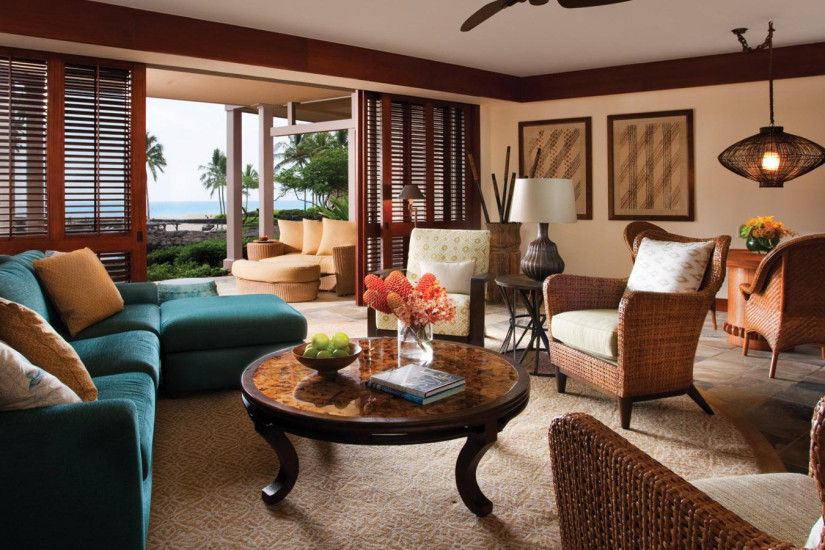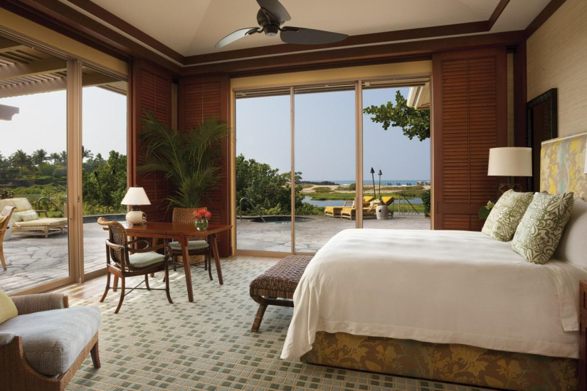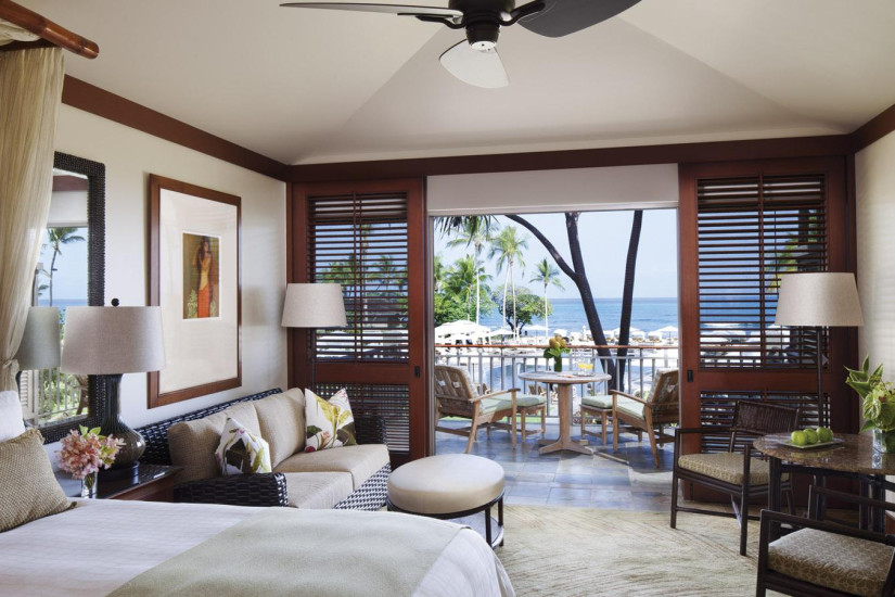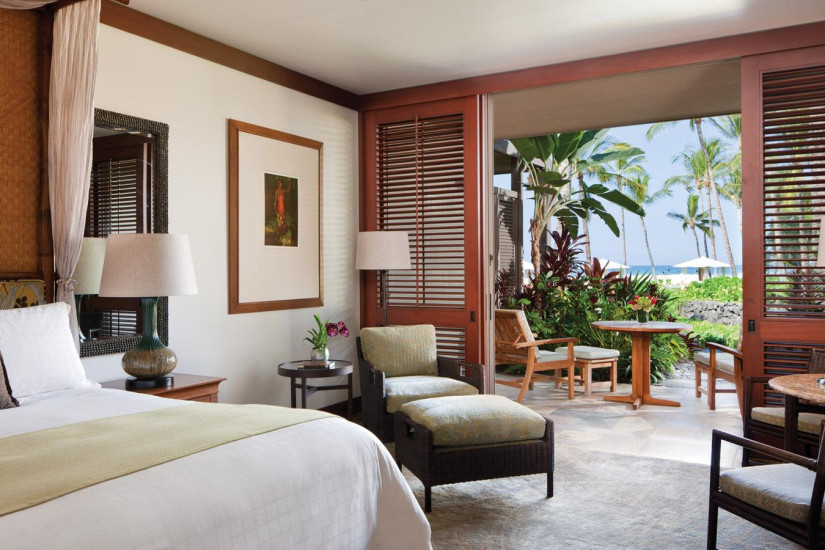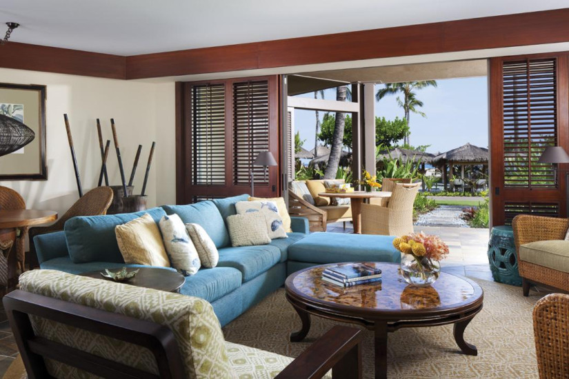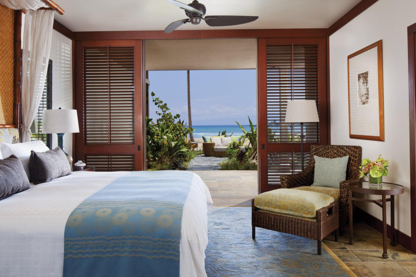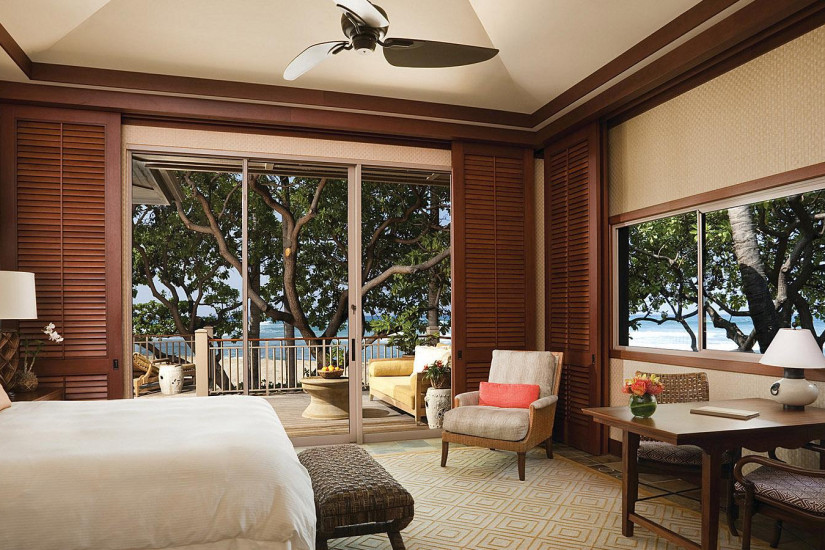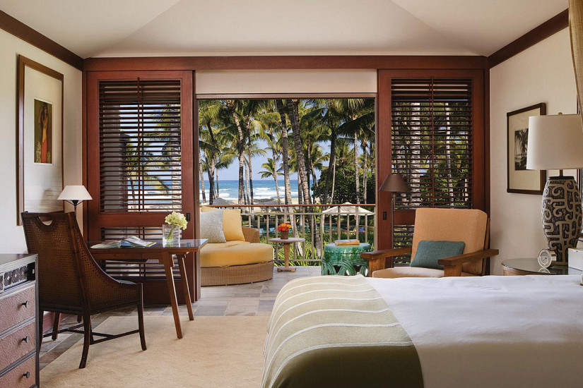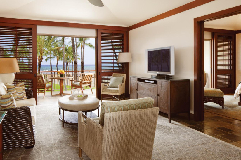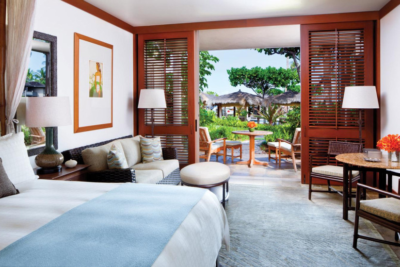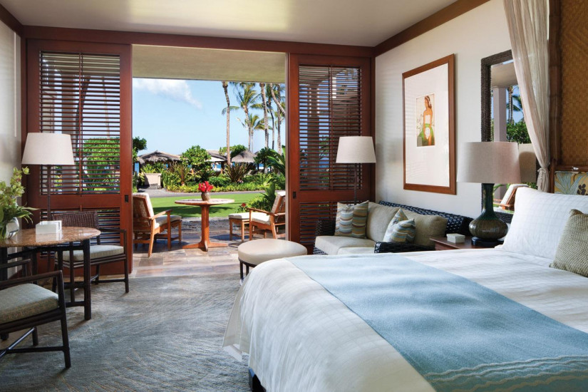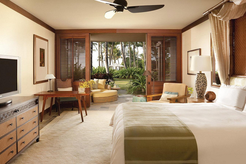 - В отеле 243 комфортабельных номера различных категорий, включая 192 Guest Rooms и 51 Suites и Villas. Просторные номера выполнены в элегантном островном стиле и украшены произведениями искусства гавайских мастеров, а с балконов и террас открывается прекрасный вид на океан, гольф-поле и тропические сады.