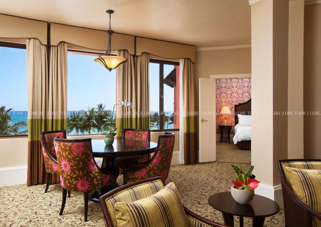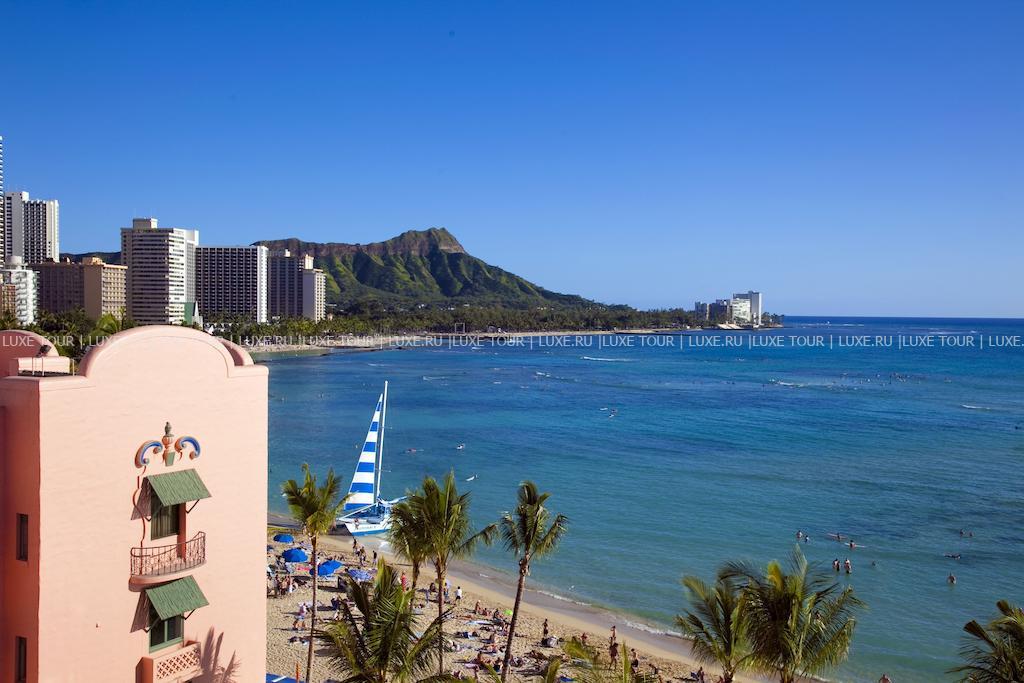 Элегантные корпуса отеля The Royal Hawaiian Гавайи, окруженные 10-акровым благоухающим тропическим садом со сверкающими бассейнами, расположились у пляжа Waikiki Beach, в популярной курортной зоне Вайкики, на южном побережье острова Оаху (Гавайи; США). The Royal Hawaiian Гавайи, ведущий свою историю с 1927 года, — один из лучших отелей курорта: здесь не раз отдыхали голливудские звезды, а сочетание романтической атмосферы, особого шарма, обилие развлечение, флер гавайских традиций и дивная природа постоянно привлекают новых гостей. В 2008 году The Royal Hawaiian Гавайи прошел полную реновацию, сохранив свой первоначальный испано-мавританский облик в архитектуре и неоклассический стиль интерьеров. Рестораны и бар отеля сервируют блюда местной и гавайской кухонь в сопровождении вин, тропических коктейлей и прохладительных напитков. Также в распоряжении гостей The Royal Hawaiian Гавайи — СПА-центр, салон красоты, залы для банкетов и заседаний, бизнес-центр, галерея магазинов, пляжный клуб, бассейны.