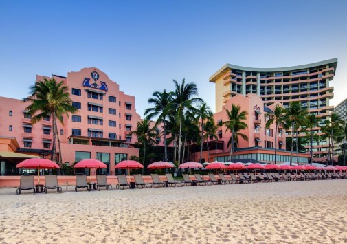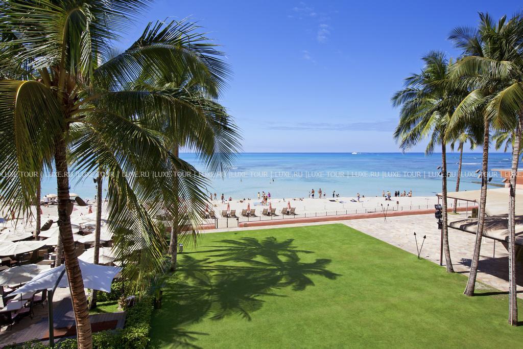 The Royal Hawaiian принадлежит часть оборудованного песчаного пляжа Waikiki Beach.