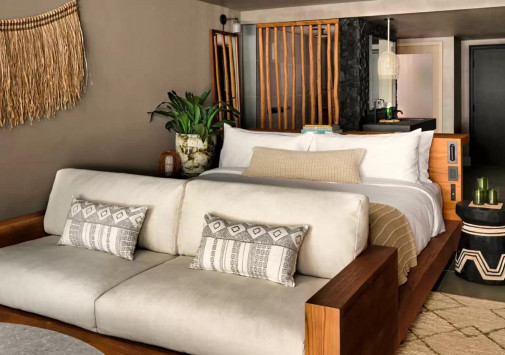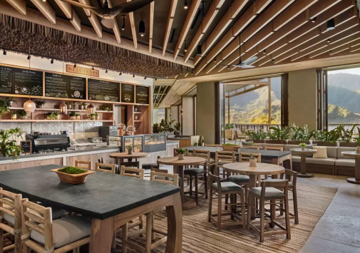 - Снек-бар Sandbox у бассейна с видом на океан предлагает свежеиспеченную пиццу, тако и легкие блюда в гавайском стиле, а также освежающие напитки и коктейли, в том числе, на основе агавы.