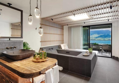 1 Hotel Hanalei Bay расположен среди изумрудных тропических зарослей, у пляжа с золотистым песком и сапфировых вод залива Ханалеи, окруженного величественными скалами. Современная архитектура и дизайн отеля гармонично сочетаются с гавайским стилем и использованием островных природных материалов, а высококлассный сервис – с традициями Кауаи. Гостей ждут стильные номера с оригинальным интерьером и видом на океан, ресторан, предлагающий изысканные блюда из отборных местных продуктов, бары с широким выбором экзотических коктейлей, бассейны для взрослых и детей, эксклюзивные процедуры в Spa-центре, детский клуб и разнообразие возможностей для активного отдыха и знакомства с уникальной природой и культурой острова Кауаи. 1 Hotel Hanalei Bay предлагает роскошный отдых в красивейшем уголке Гавайев.