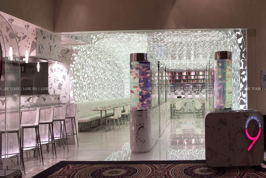 • Mr.Chow – ресторан с террасой и видом на живописные бассейны, предлагающий аутентичную кухню Пекина.