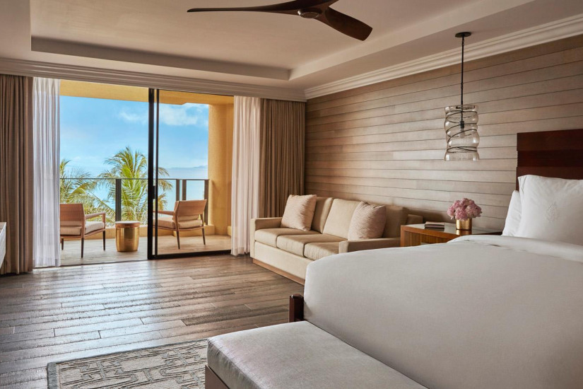 - 56 м2. Состоит из спальни с кроватью king-size или двумя кроватями queen-size, зоны отдыха, ванной комнаты с ванной и душем, террасы с панорамным видом на сад и океан. Максимальное размещение – 3 взрослых или 2 взрослых + 2 ребенка. Гостям номера предоставляются услуги клубной гостиной.