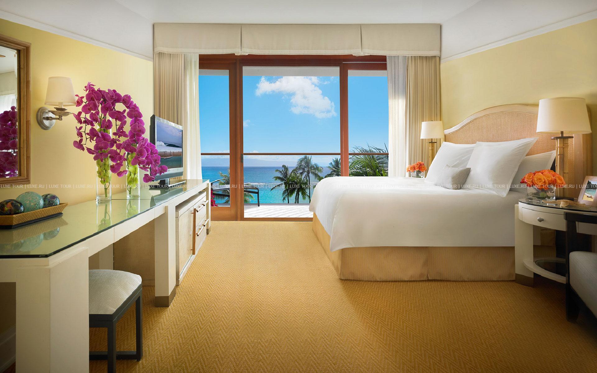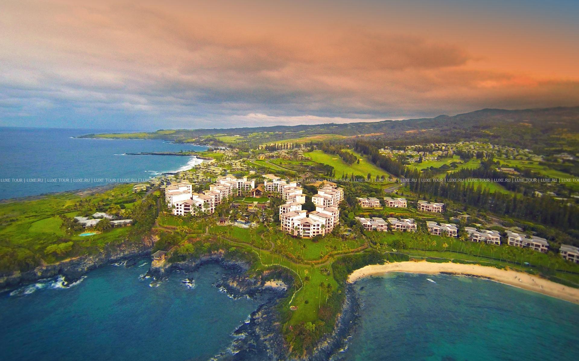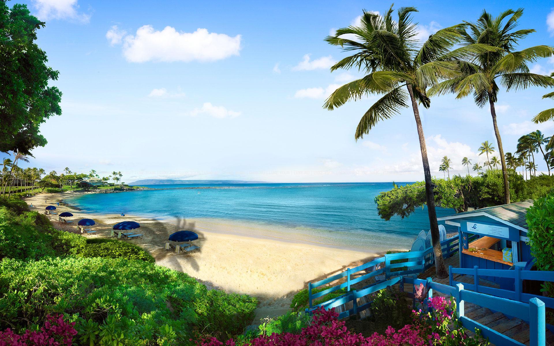 Montage Kapalua Bay Hotel Гавайи расположен на побережье острова Мауи, у пляжа в заливе Капалуа, в 53 км (чуть больше часа езды) от аэропорта Кахулуи.