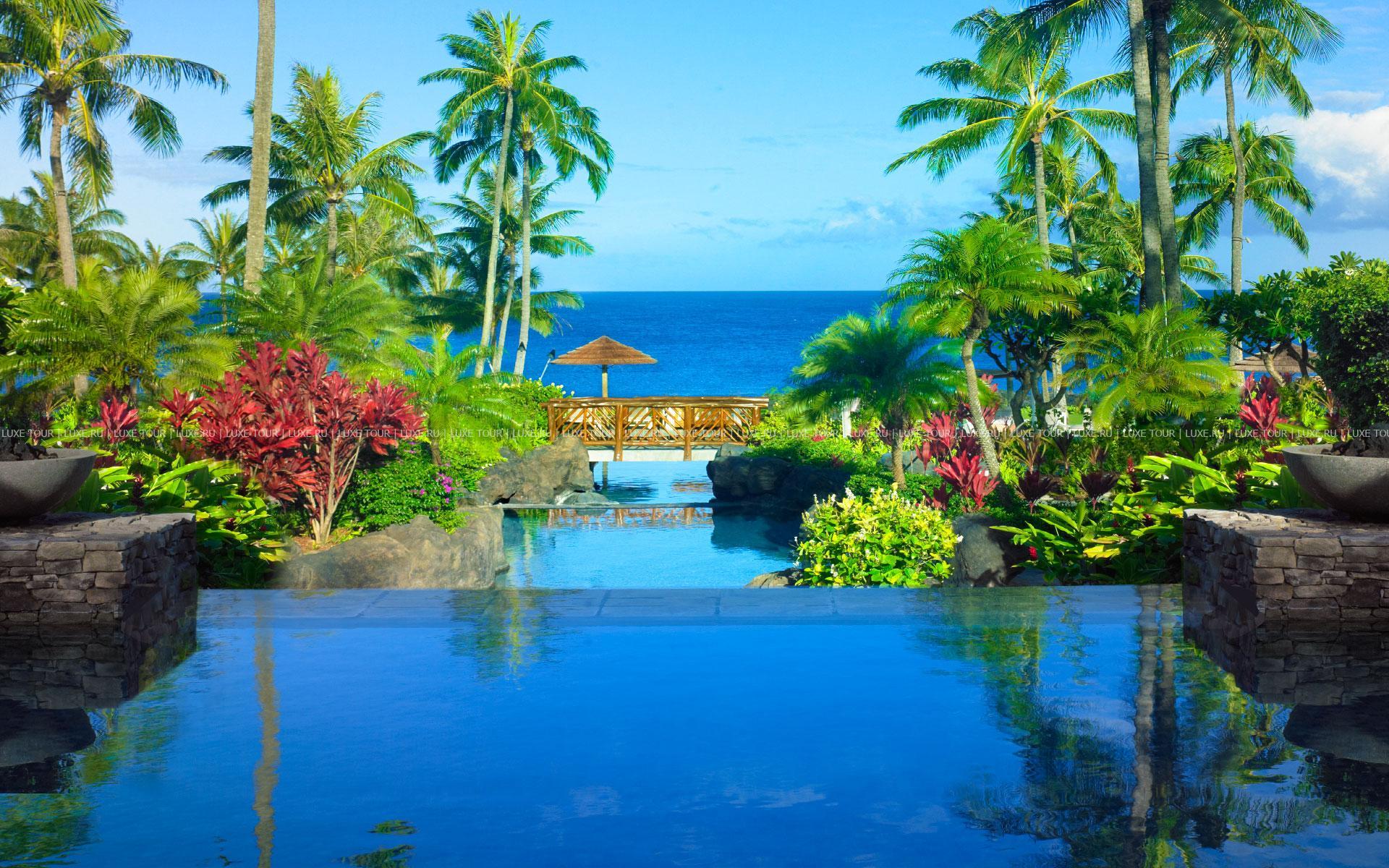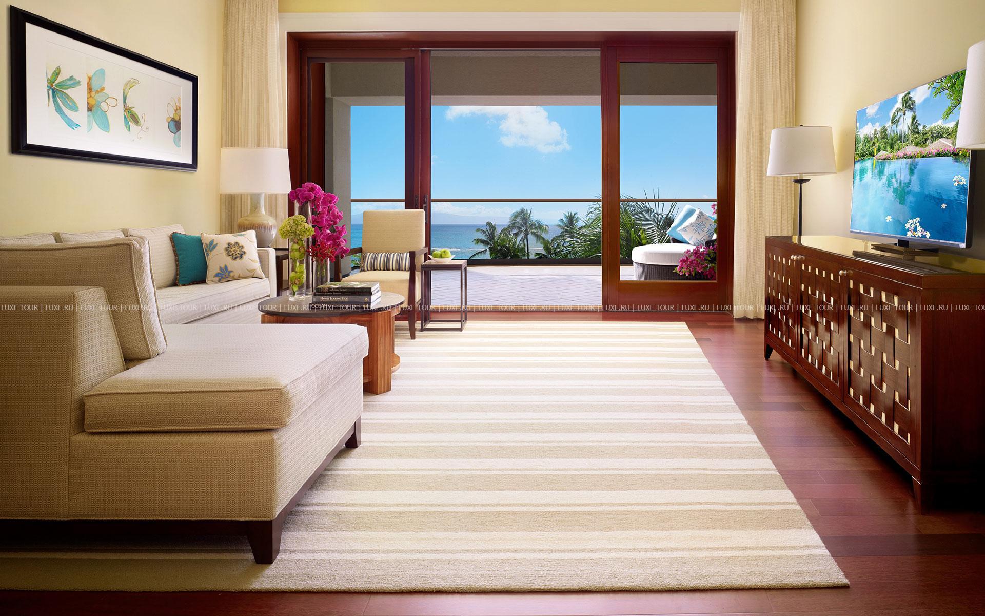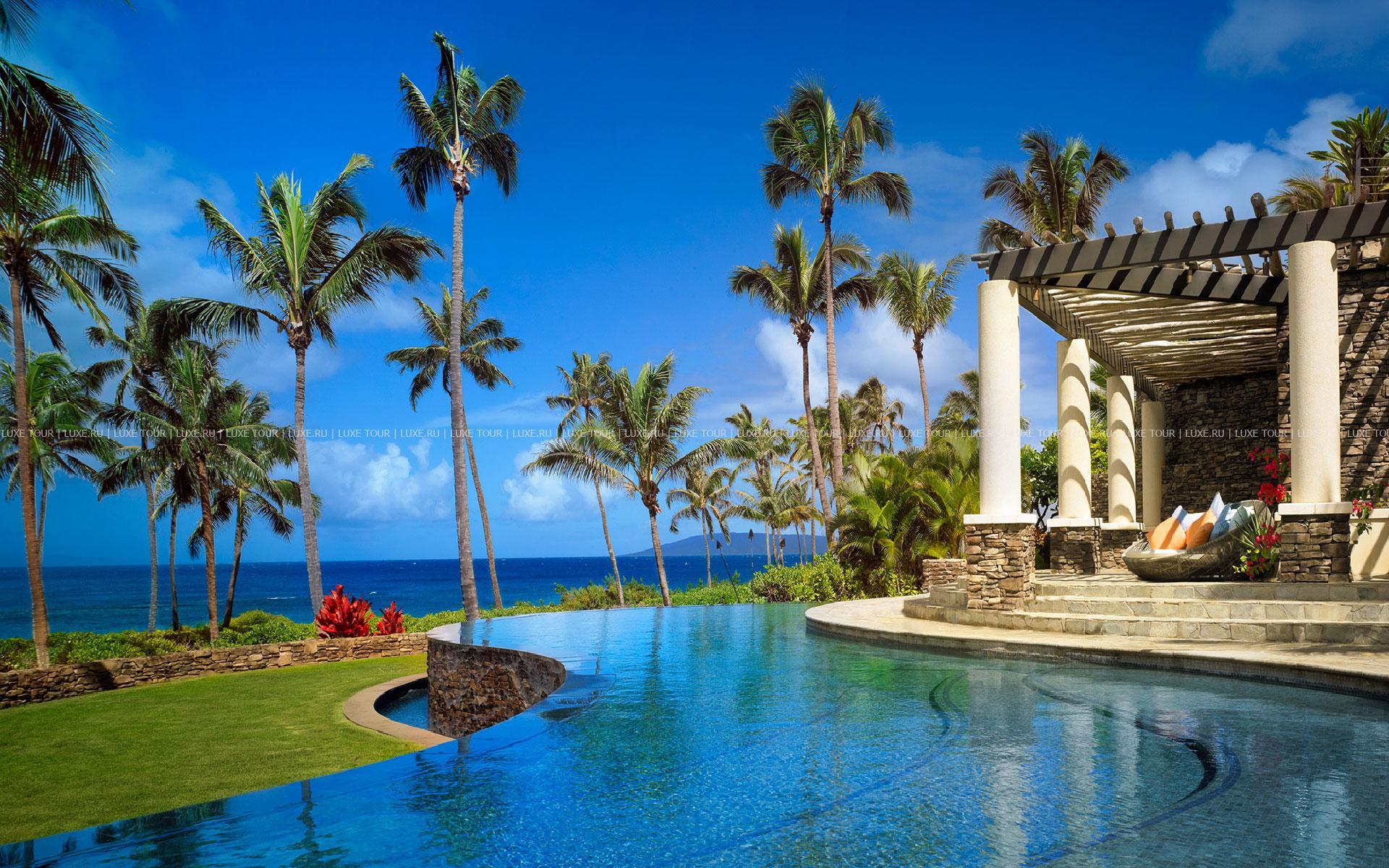 Montage Kapalua Bay Hotel Гавайи расположен на побережье острова Мауи, у пляжа в заливе Капалуа, в 53 км (чуть больше часа езды) от аэропорта Кахулуи.