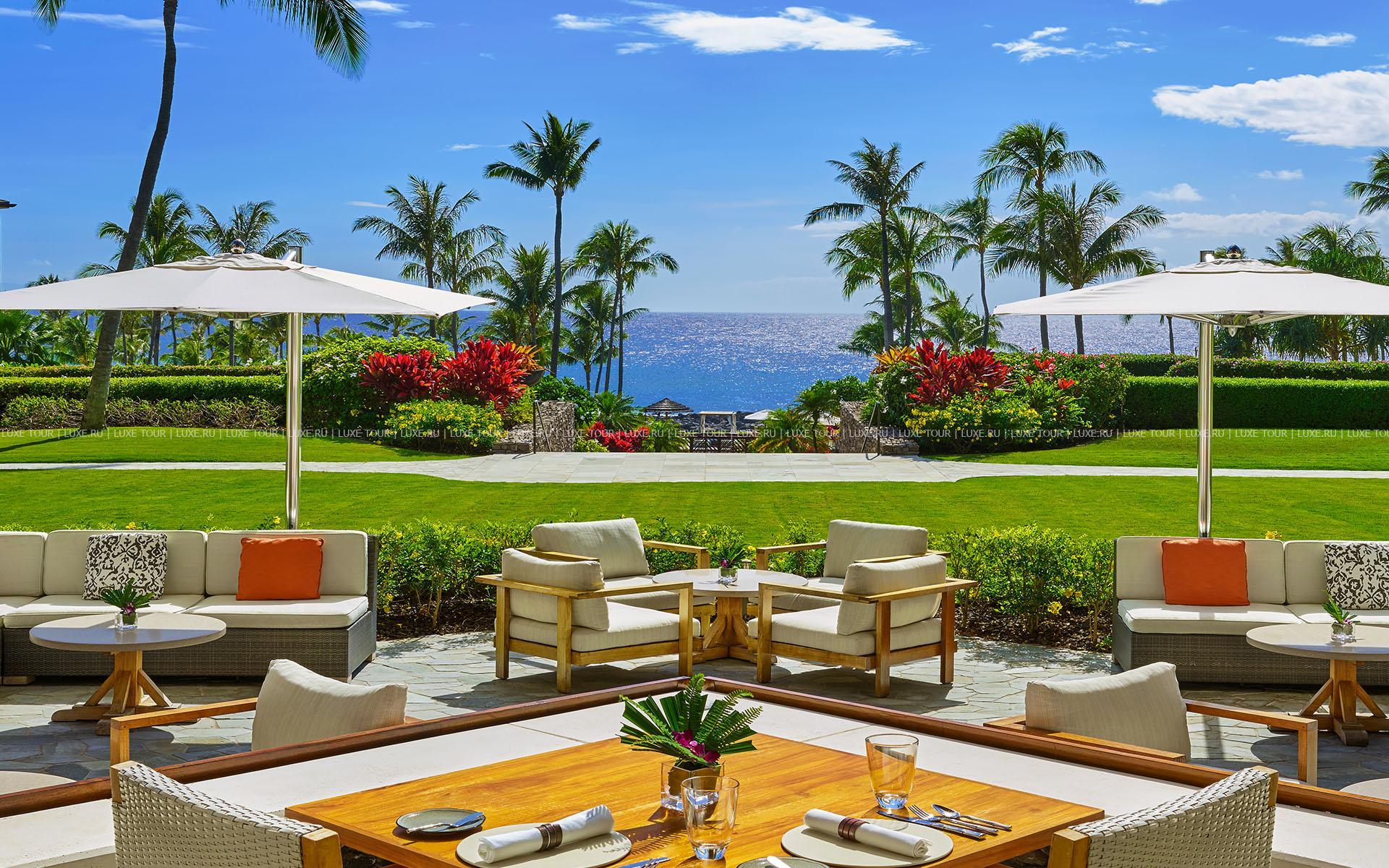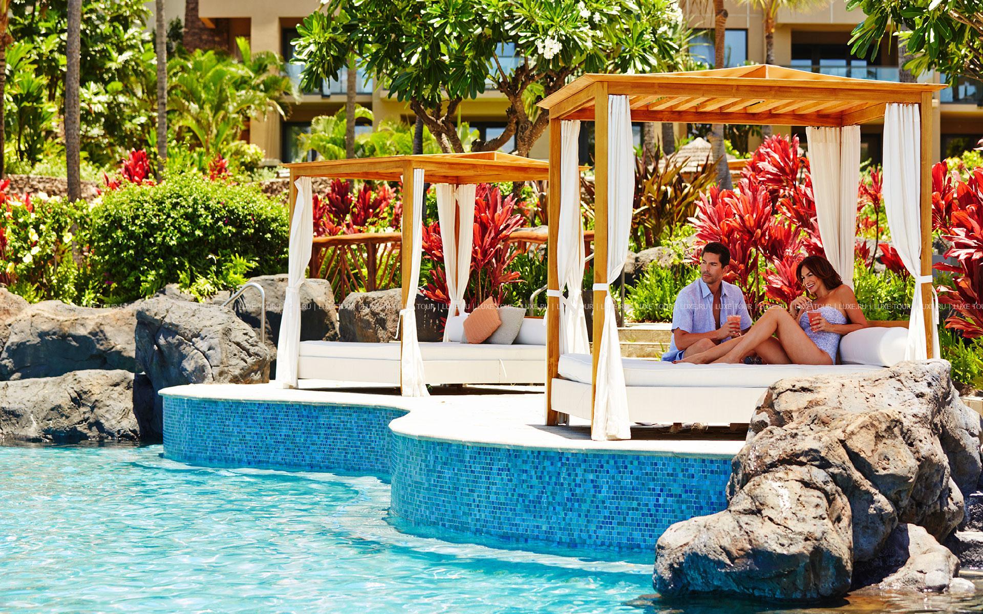 - В баре у бассейна Hana Hou можно перекусить и отдохнуть за освежающим напитком, любуясь видом на залив Капалуа.