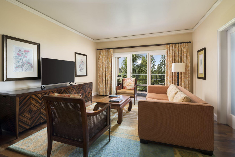 - В отеле 463 номера различных категорий, включая Guest Room и Suite. Номера декорированы в элегантном стиле, отделаны натуральным темным деревом, украшены произведениями искусства в гавайских традициях и оснащены с первоклассным комфортом. С балконов и террас номеров открывается великолепный вид на океан и сады. Также отель располагает клубными номерами, гостям которых предлагается: услуги консьержа, завтрак, легкие закуски и напитки в течение дня, а также пользование Интернетом и другие услуги клубной гостиной.